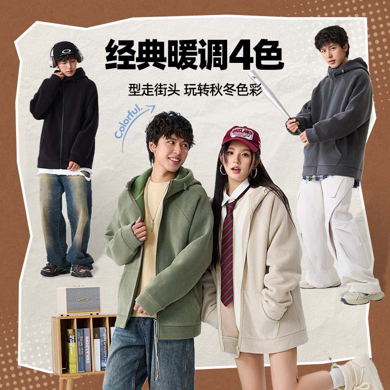 型美式 HM男装 宽松版 新款 潮流连帽夹克1300912 牛仔外套2025年秋季