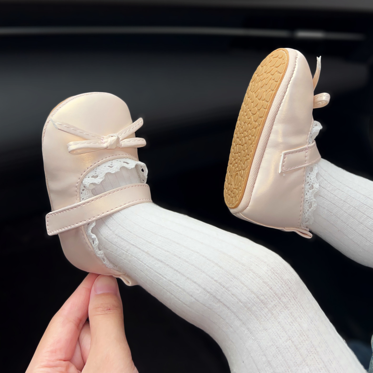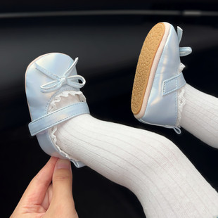 公主鞋 宝宝鞋 珠光小皮鞋 蕾丝蝴蝶结软底防滑0 秋季 1岁婴儿鞋 新款