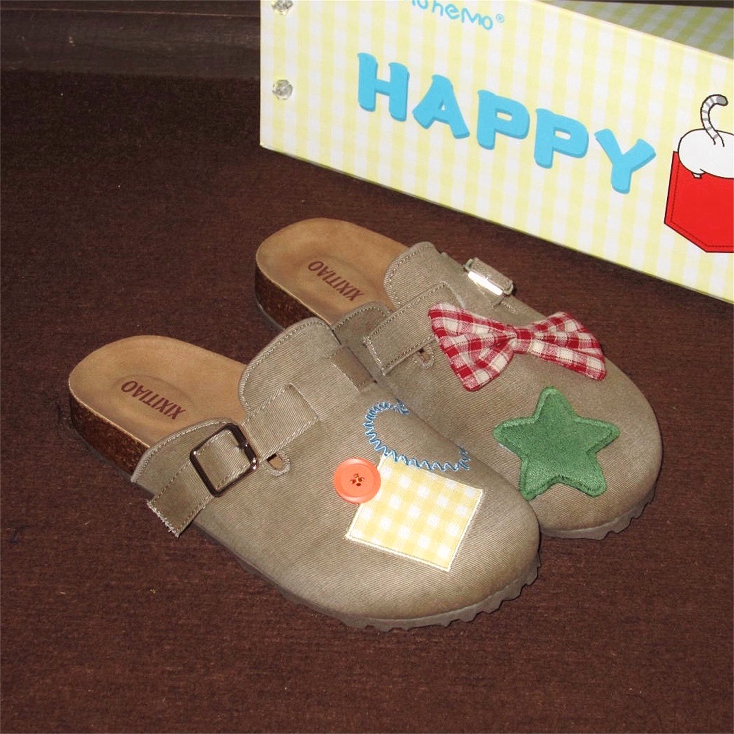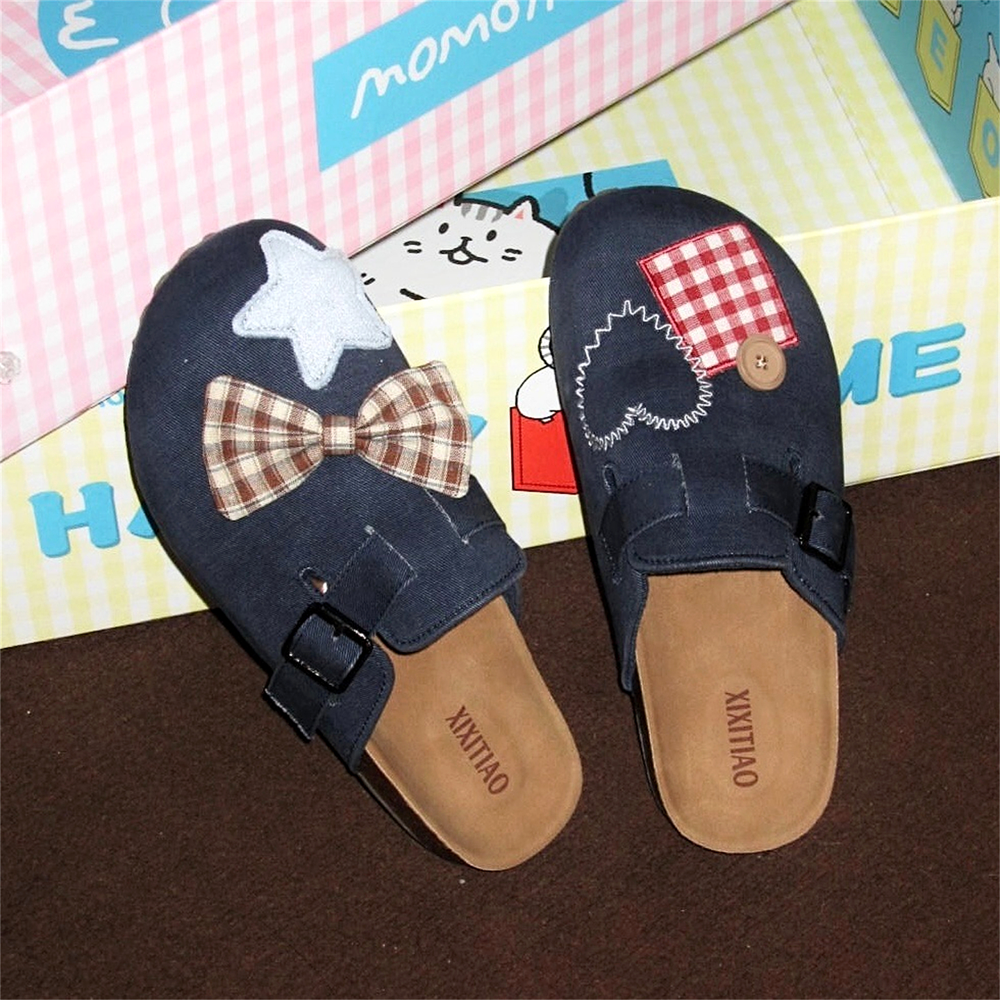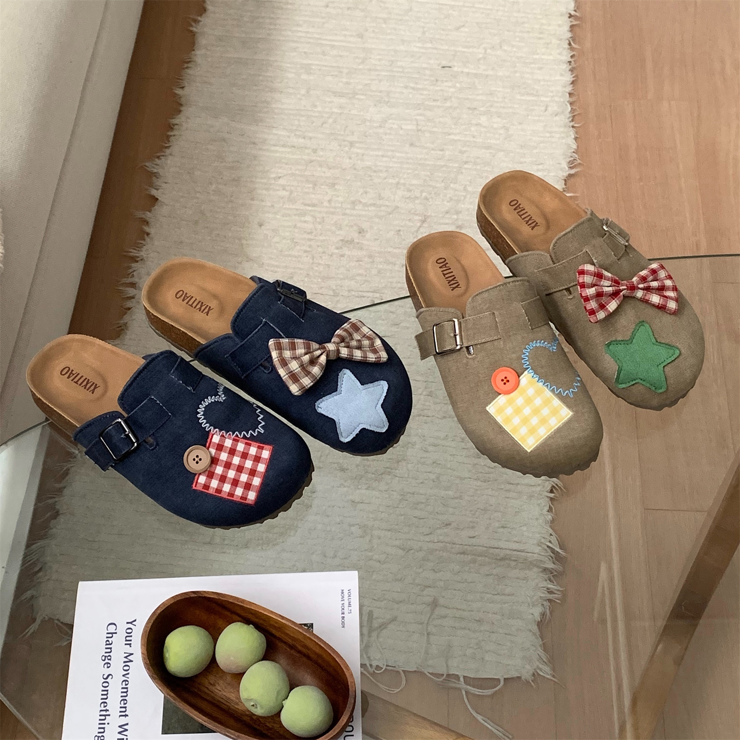 秋冬懒人女士外穿韩系格子蝴蝶结勃肯鞋 时尚 防滑一脚蹬包头半拖鞋