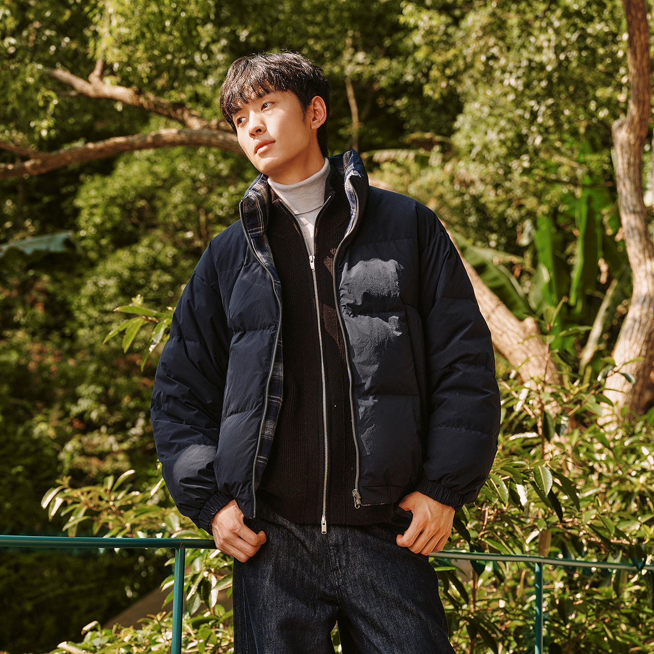 羽绒服纯色简约保暖时尚 面包短款 百搭帅气 男士 雪中飞2025冬新款