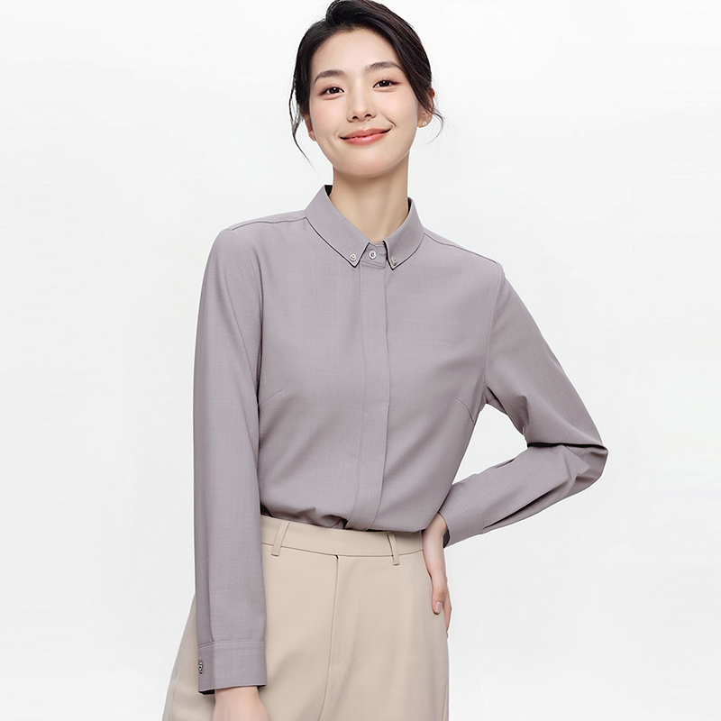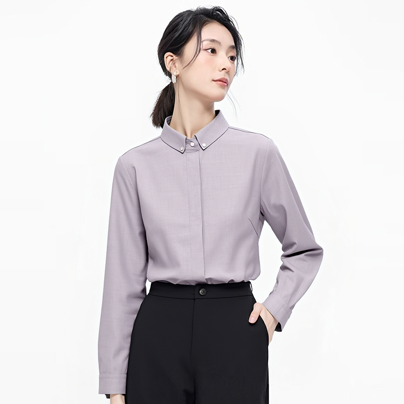 通勤衬衣气质翻领紫色面试衬衫 2025春秋季 职业上衣时尚 女长袖 新款