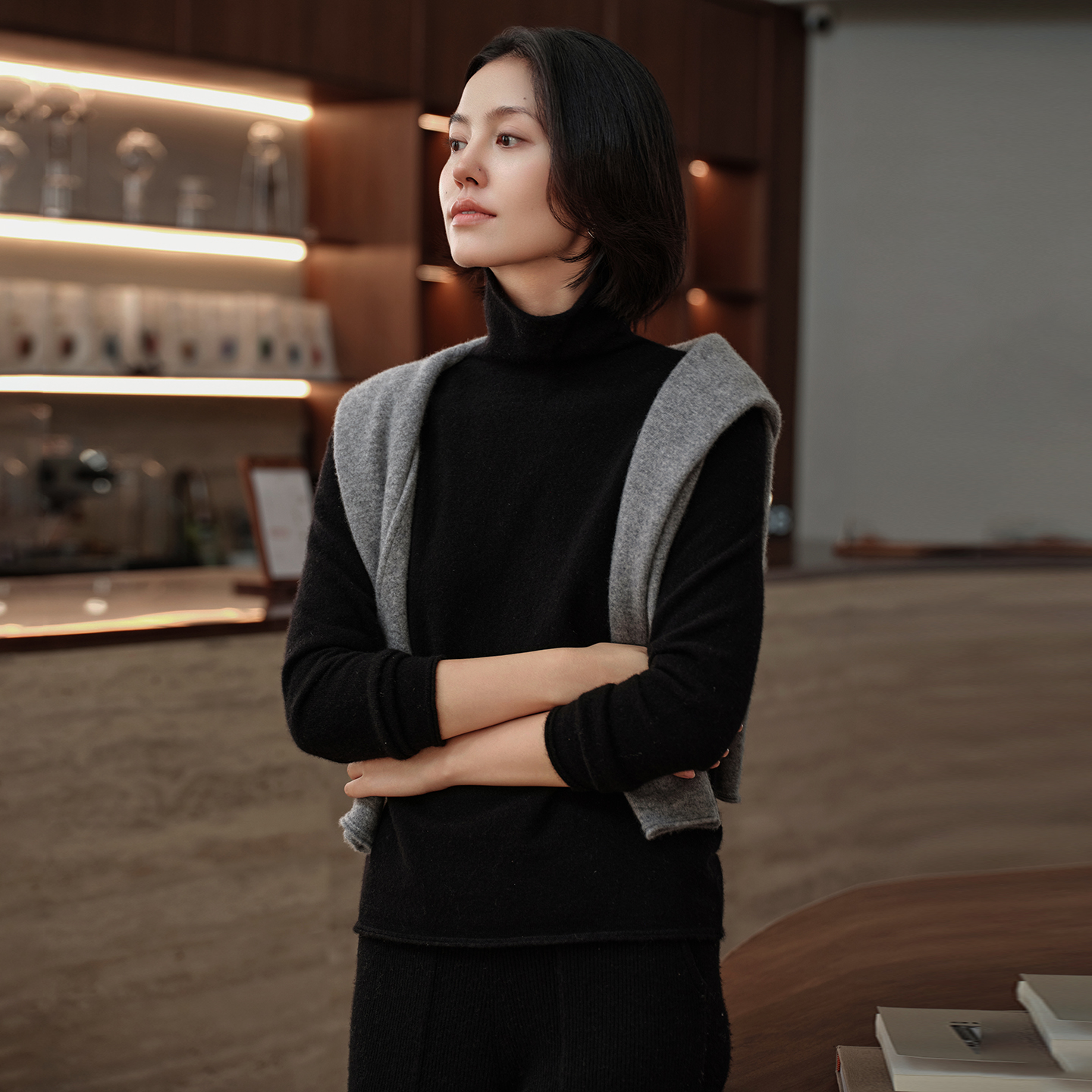 打底热销 东黎 100%羊绒女半高领针织衫 纯澈光影 4298 秀场同款