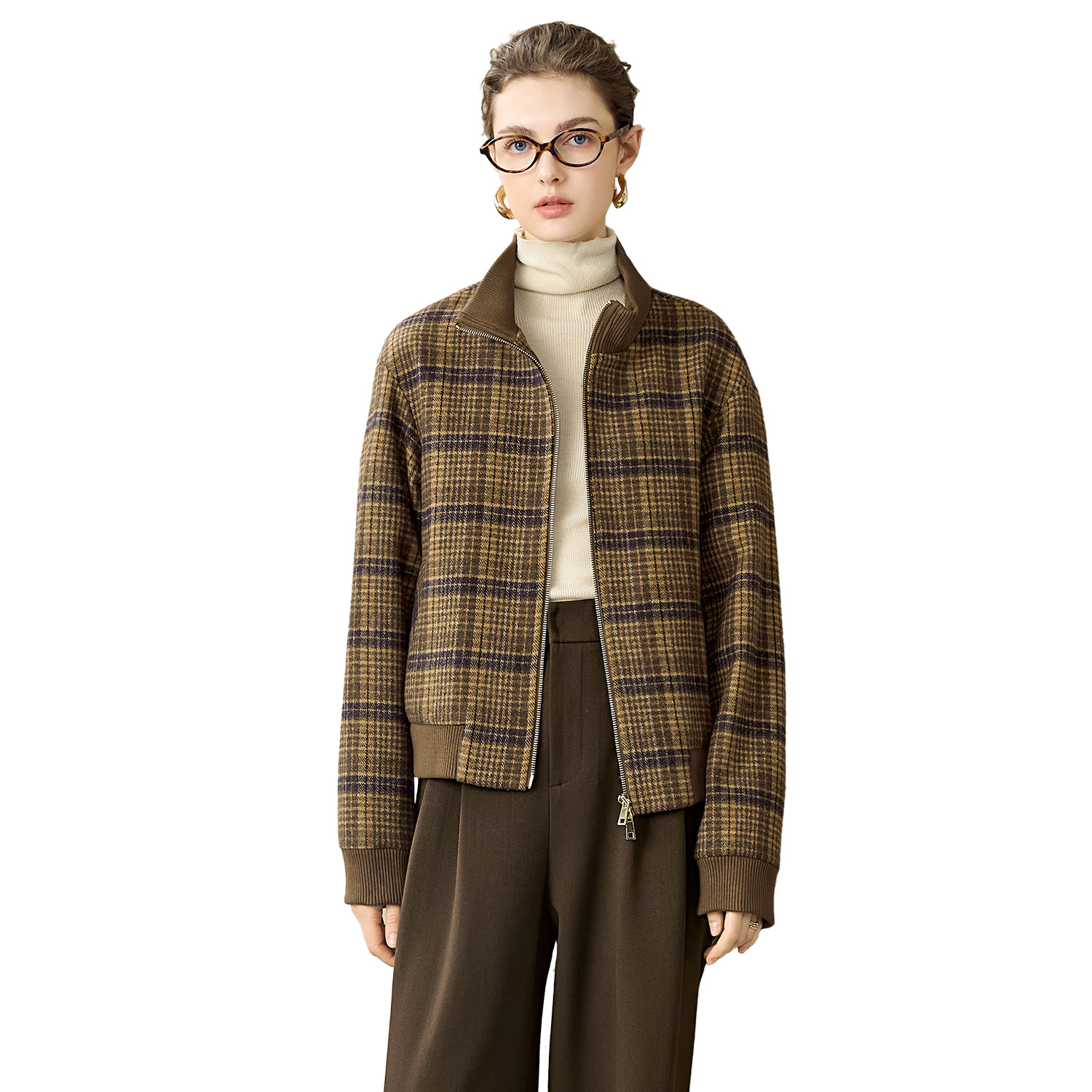 短款 新款 复古高级感百搭通勤夹克 格子毛呢外套女2025冬季 颜域修身