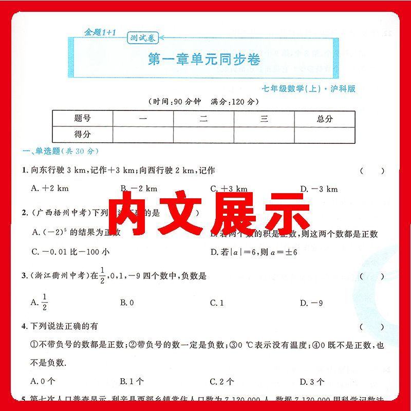 测试卷期中期末卷期末卷练习册沪科版 七年级上册数学沪科版 社课本练习册必刷题目单元 同步上海科学技术出版 试卷