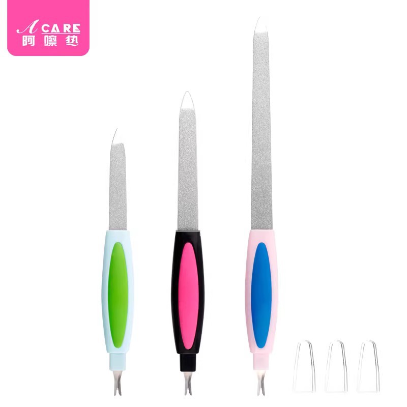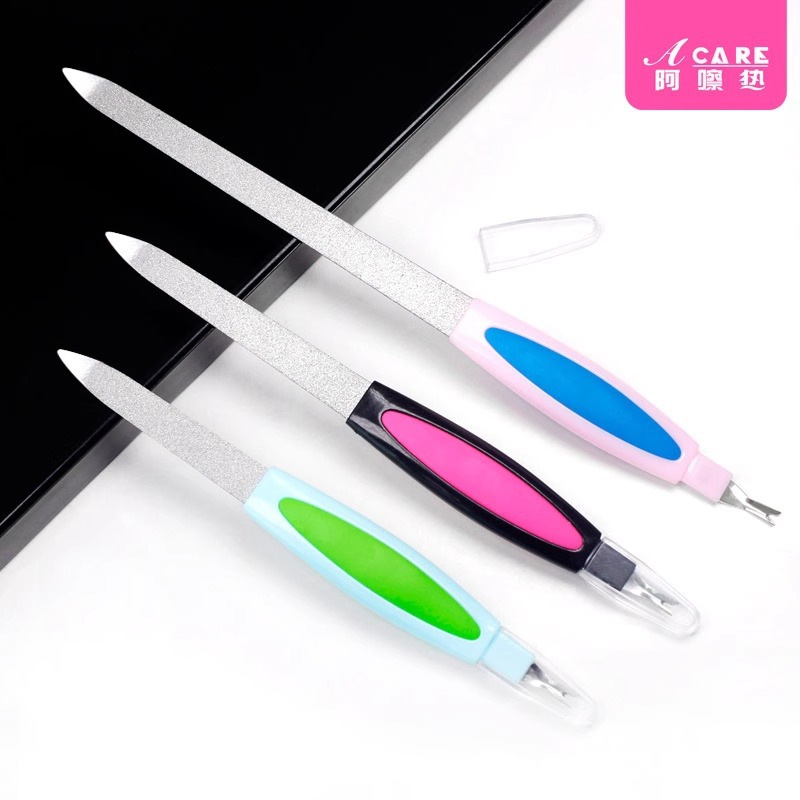 指甲锉 易上手美甲工具修护理甲面双面带盖锉条刀 不锈钢B1pn0