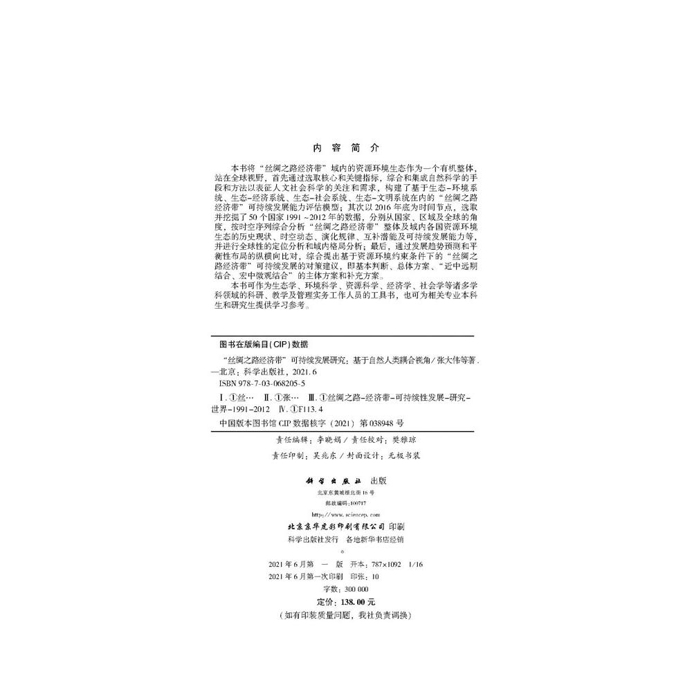 张大伟等 可持续发展研究——基于自然人类耦合视角 丝绸之路经济带