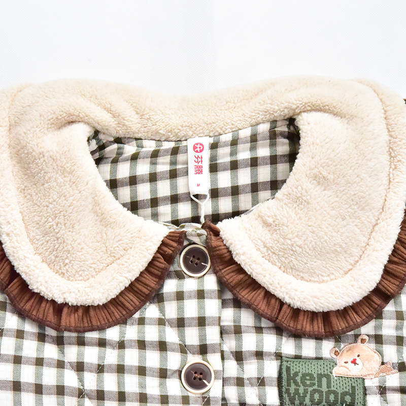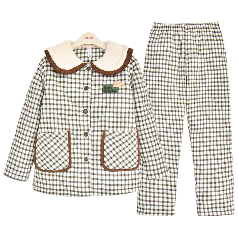 芬腾新款 全棉家居服潮 睡衣女人冬天梭织纯棉夹棉三层加厚复古美式