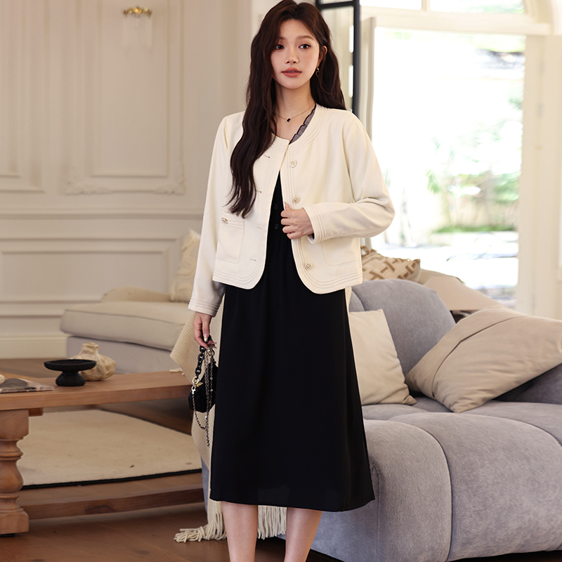 春新款 气质高腰长裤 遮肉外套 常规OL复古撞色西装 胖女孩微胖加大码