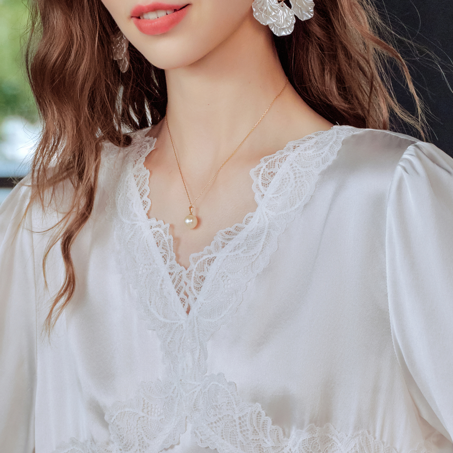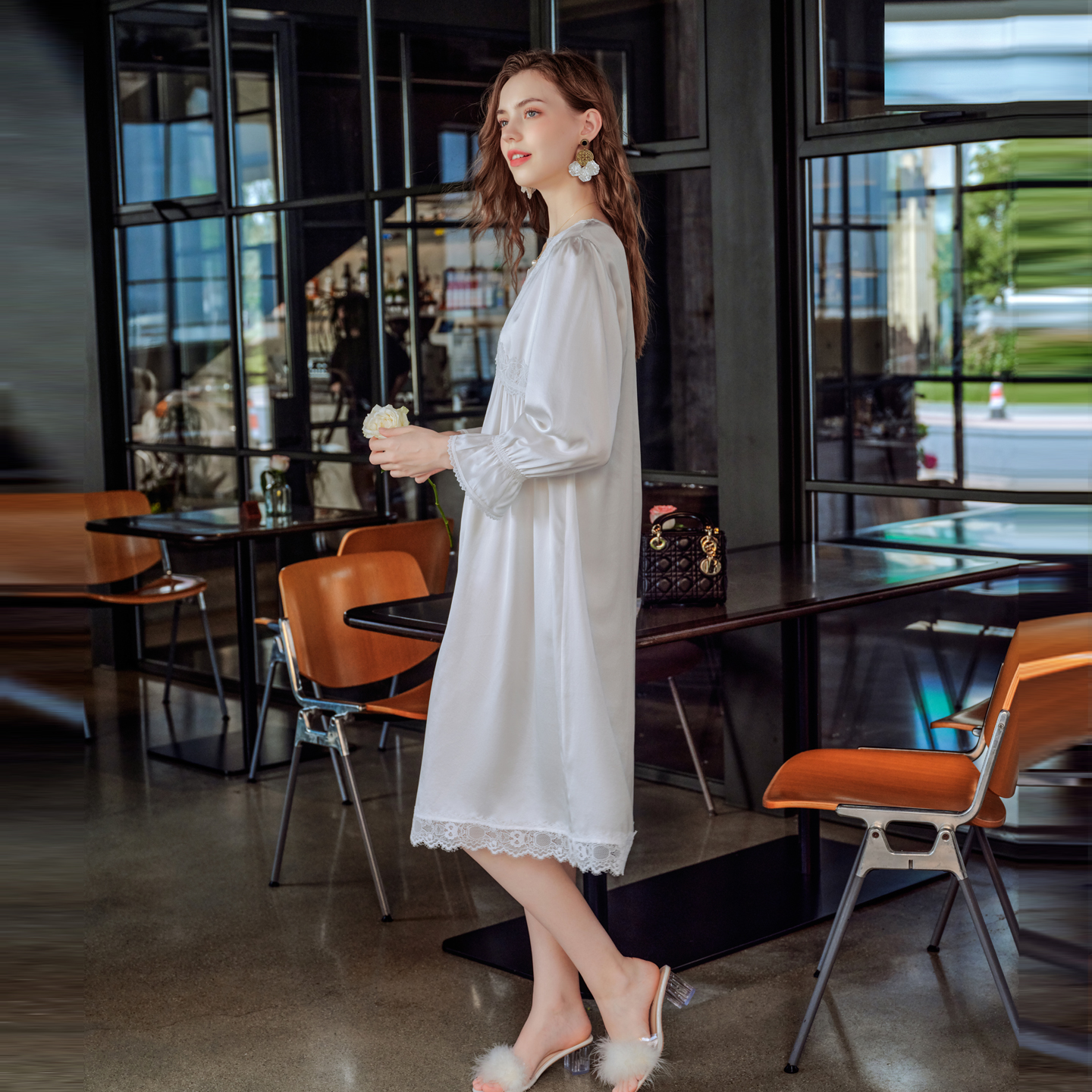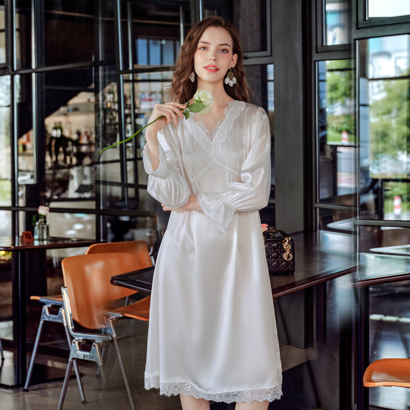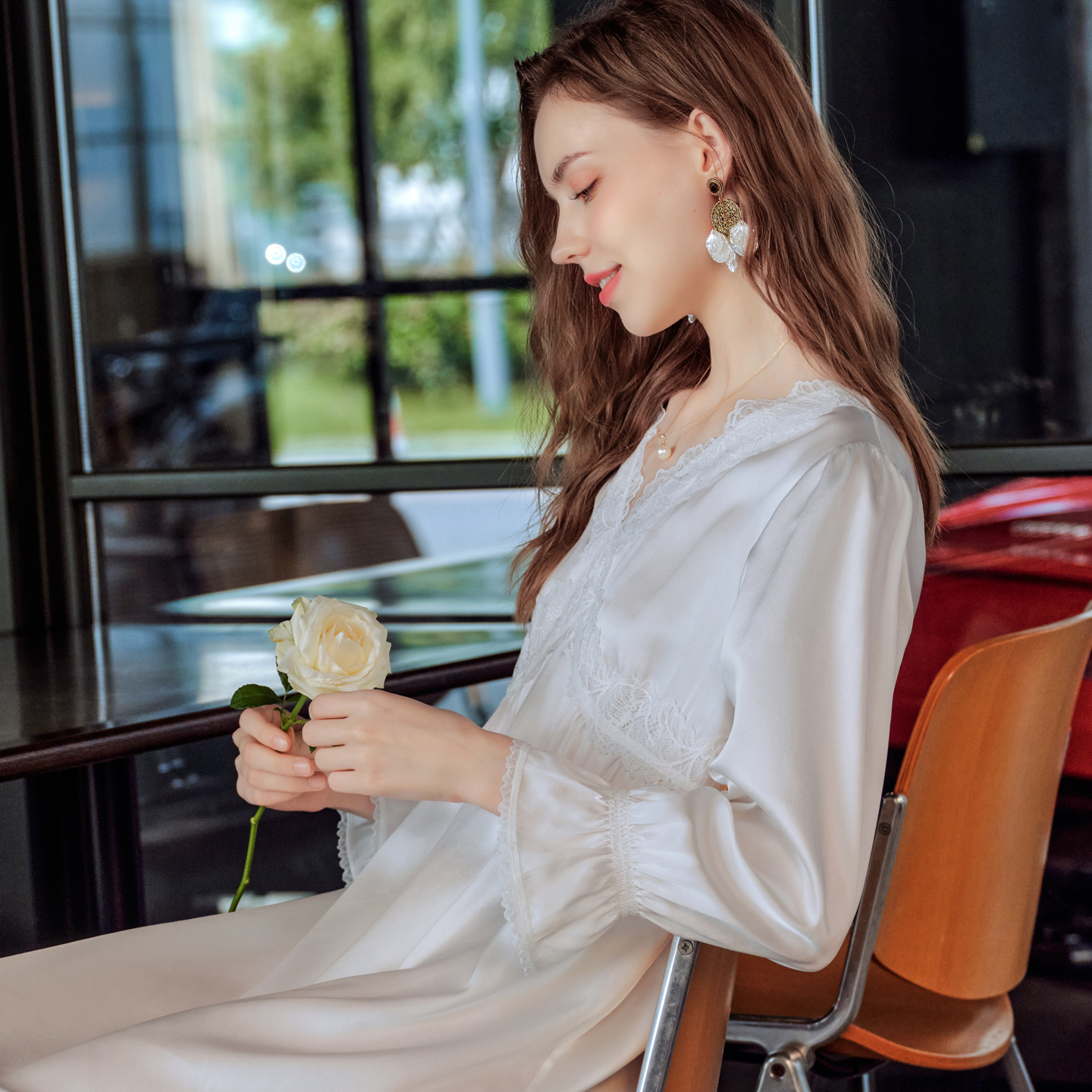 甜美蕾丝桑蚕丝绸睡衣家居服 真丝睡裙女复古法式 美标春秋新款 长袖