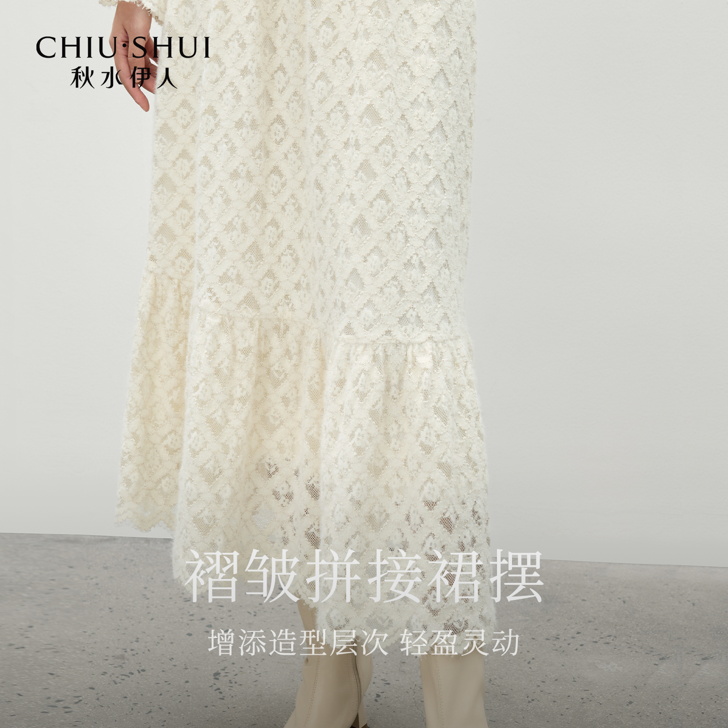 女装 秋水伊人法式 新款 2025冬季 拉毛蕾丝气质中长A字裙 复古半身裙