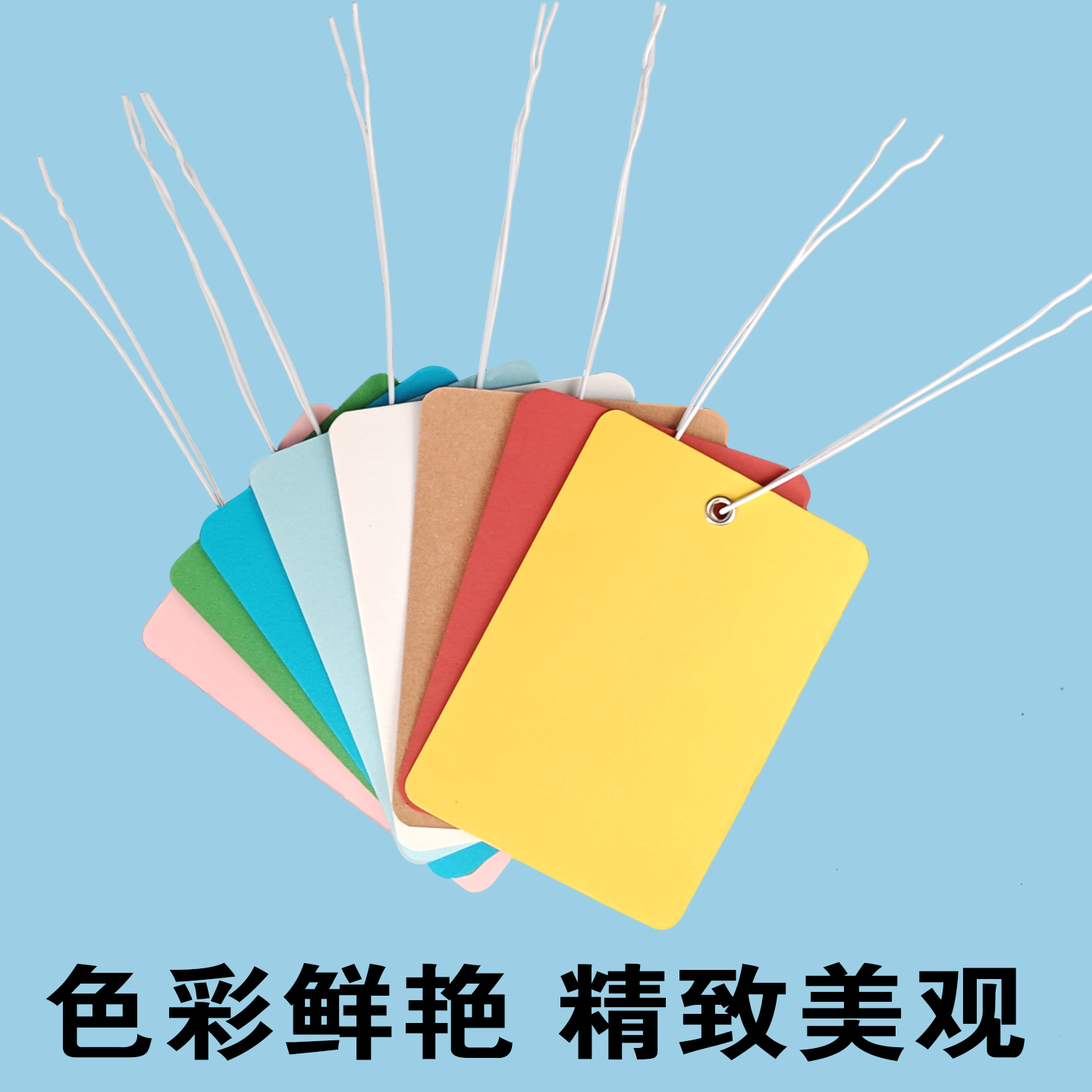 彩纸吊牌挂签鸡眼铁扣加固抗拉自带铁丝彩色硬纸卡工厂直销挂牌红黄绿蓝粉红色牛皮纸货架物料标识卡印刷定制