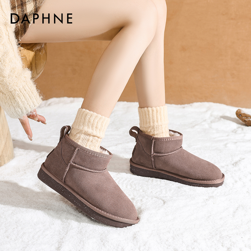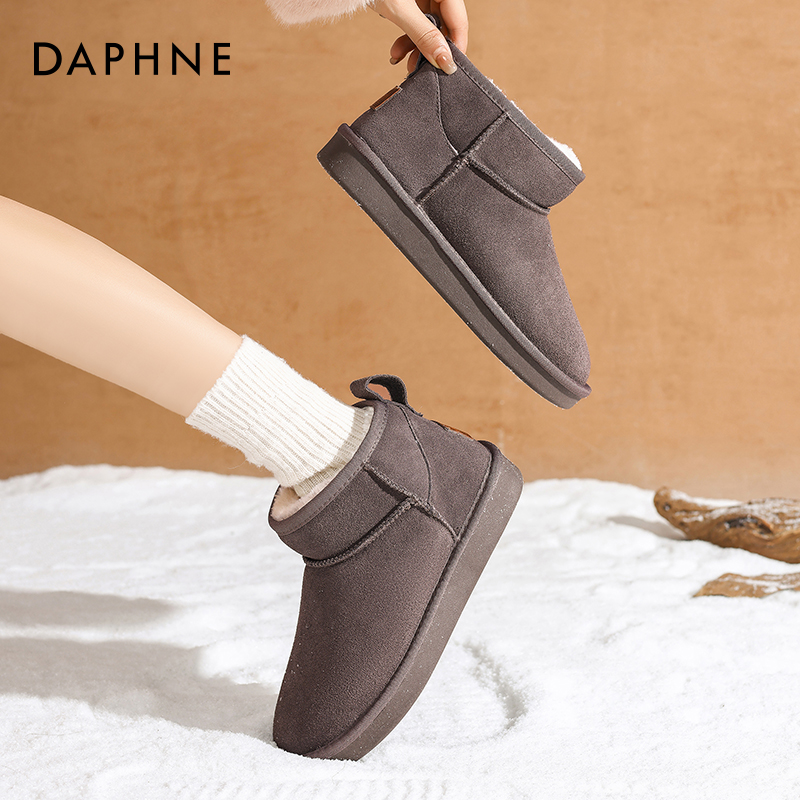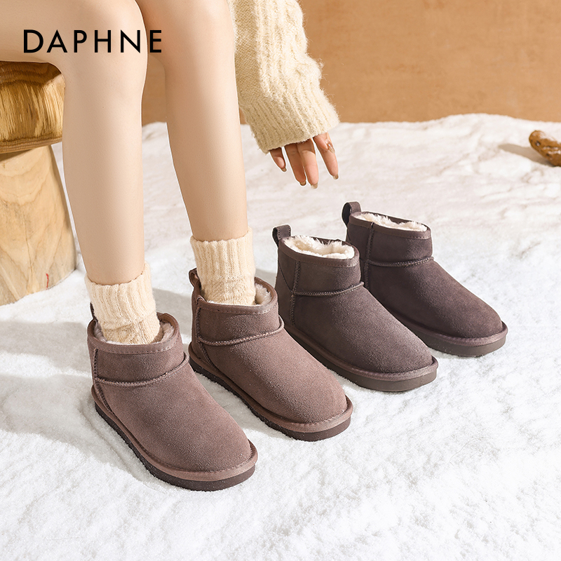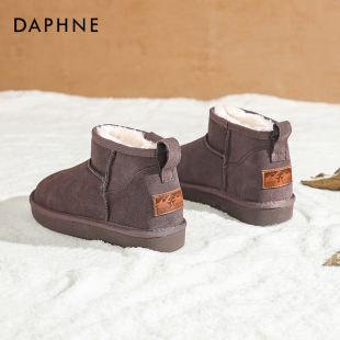 防滑加厚面包鞋 达芙妮真皮雪地靴女款 一脚蹬东北棉鞋 新款 2025冬季