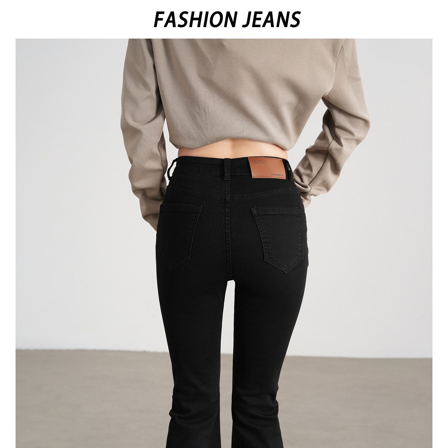 显瘦弹力小个子喇叭裤 黑色高腰微喇牛仔裤 修身 新款 辣妹 女2025秋季