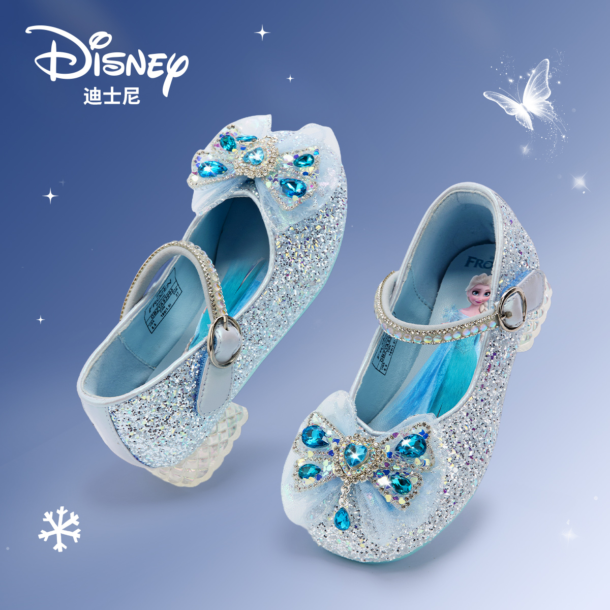 软底儿童蝴蝶结演出鞋 迪士尼童鞋 女童水晶鞋 2025新款 子 艾莎公主鞋