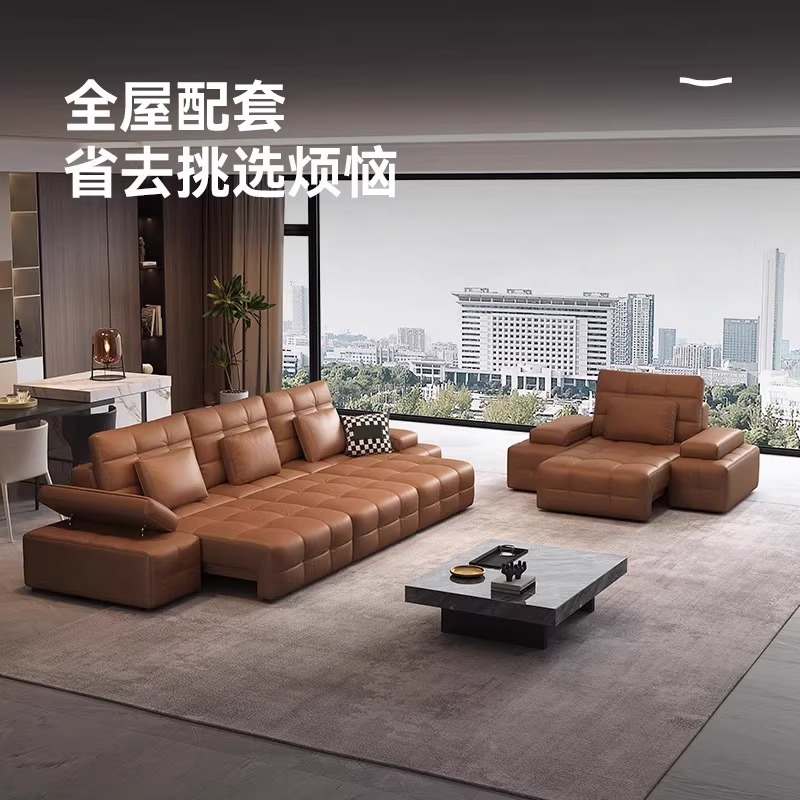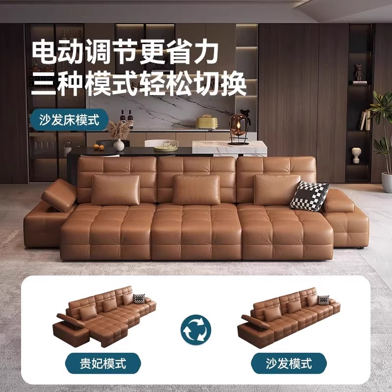 劳伦斯头层真皮电动沙发客厅2025新款 伸缩调节一体两用沙发床 意式