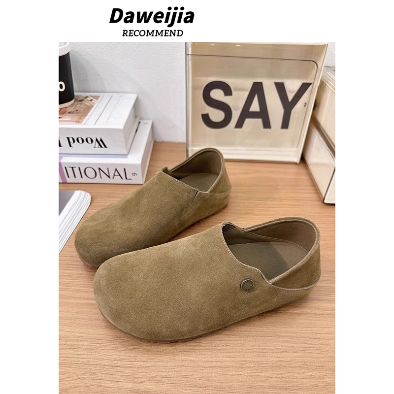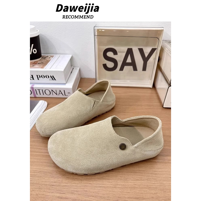 懒人一脚蹬博肯鞋 真皮两穿勃肯鞋 平底百搭豆豆单鞋 新款 女2025秋季