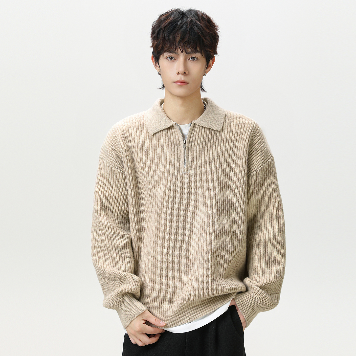毛衣外套男立领夹克披肩春装 纽花纯色开衫 厚款 秋冬季 线衣 男针织衫
