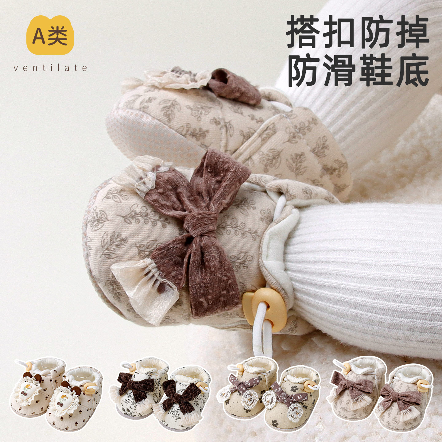 袜女 软底搭扣步前室内防滑鞋 婴儿鞋 袜春秋宝宝袜套棉新生儿不掉鞋