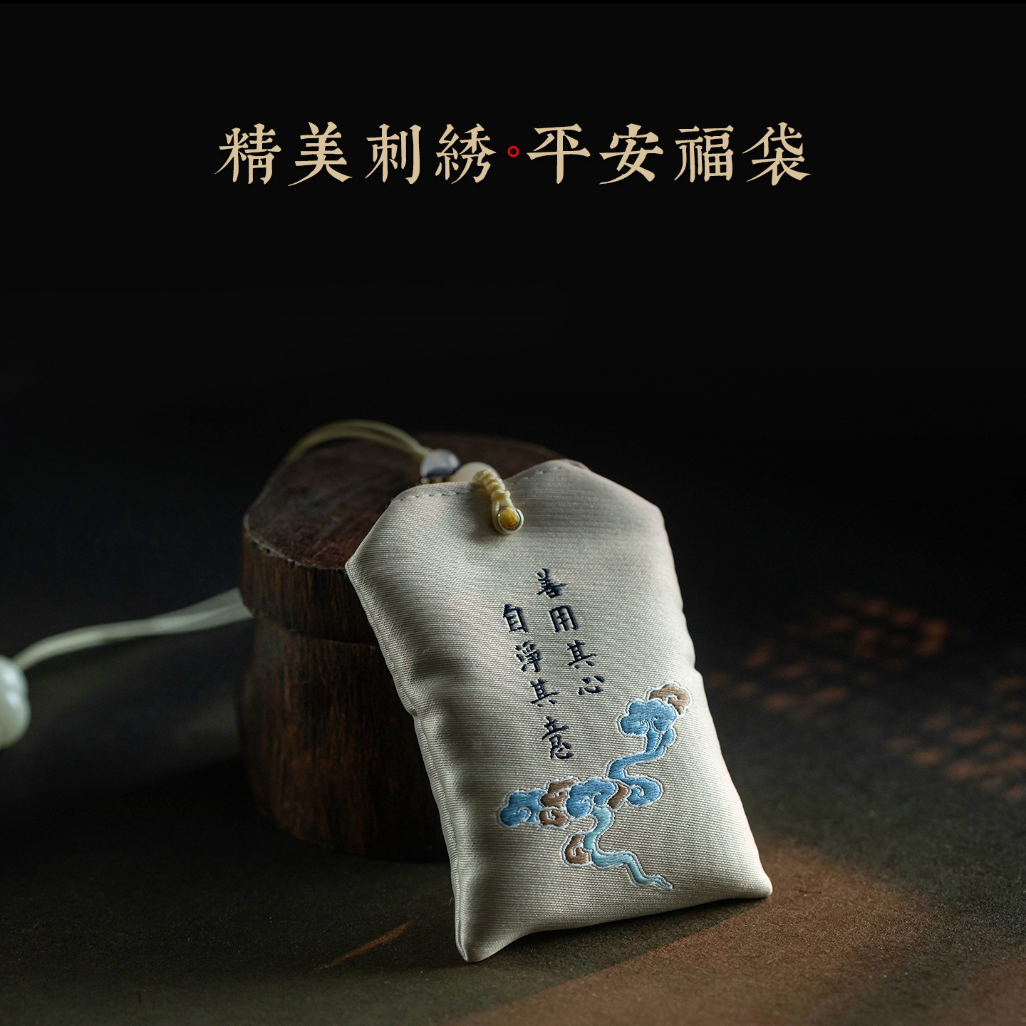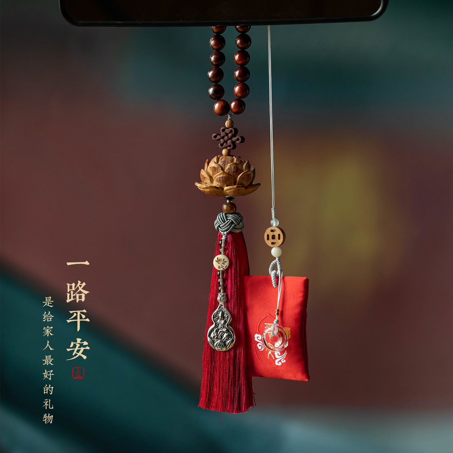 黄杨木莲花汽车挂件福袋香薰车内挂饰纯银生肖蛇马羊猴车载装 饰品