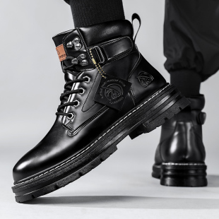 中帮机车靴子男生增高皮靴 2025新款 马丁靴男款 英伦风黑色高帮皮鞋