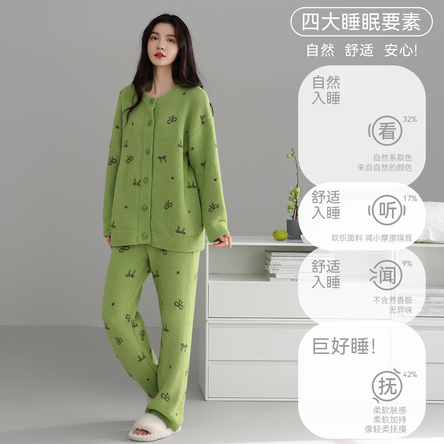 半边绒保暖女士家居服套装 mikko联名新款 果壳睡衣女冬季 Gukoo