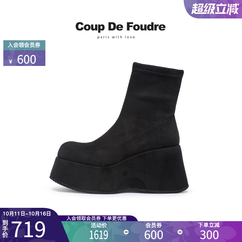 简约弹力靴休闲百搭粗跟增高瘦瘦靴女潮 时尚 CDF女鞋 2025秋冬新款