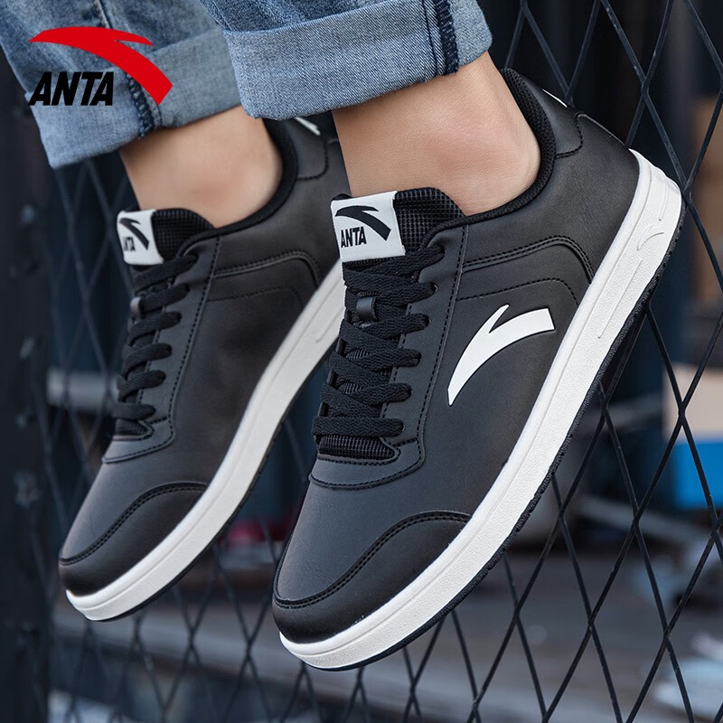 板鞋 运动鞋 子男士 皮面舒适透气潮流轻质休闲鞋 男 黑色秋季 安踏男鞋