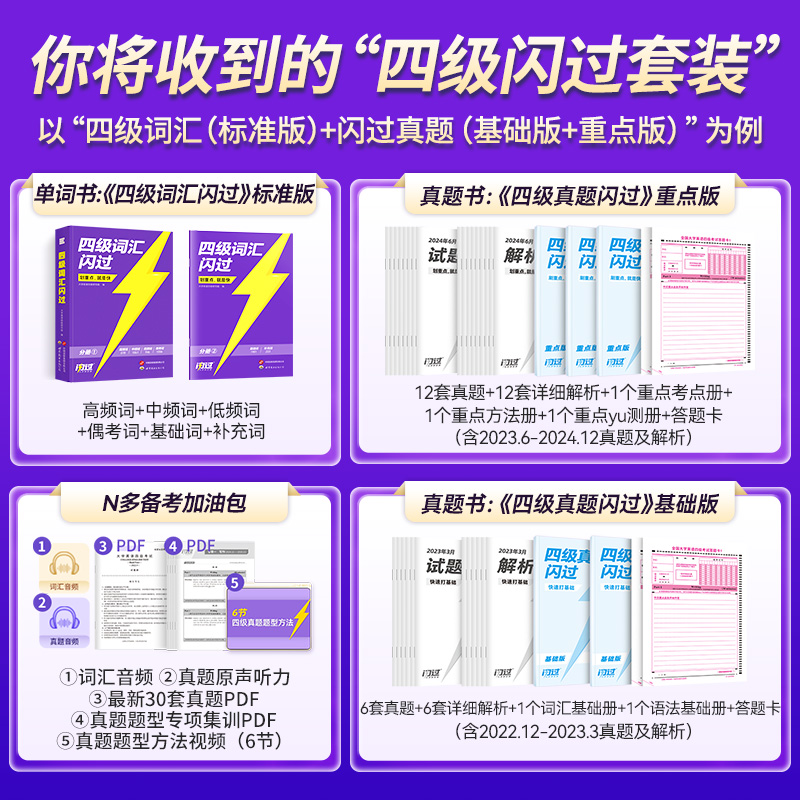 备考25.12巨微英语四级词汇闪过乱序版 大学真题高频词基础词六级试卷4级考试单词本词根词缀记忆法便携听力闪过高中默写