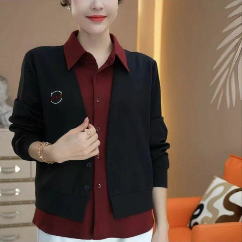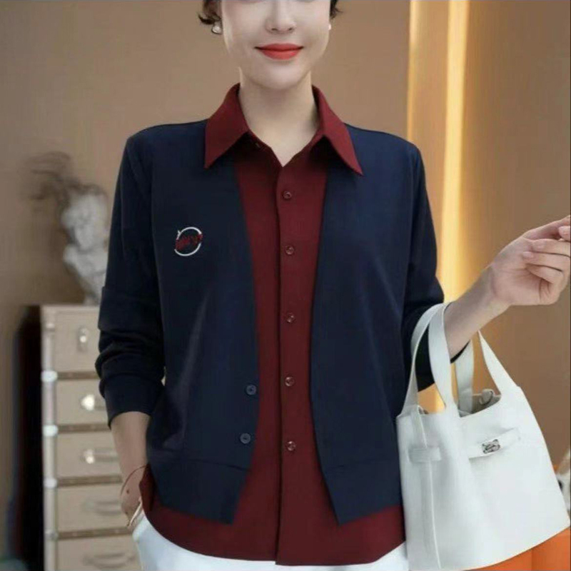 显瘦假两件衬衫 新款 轻奢减龄高端小资小上衣 洋气上衣女春秋季 时尚