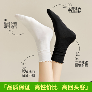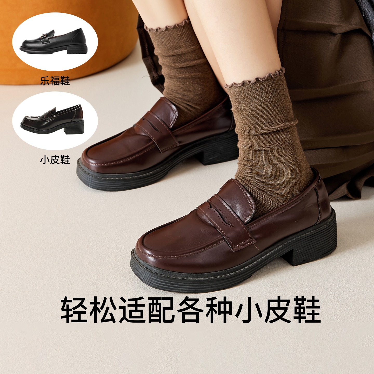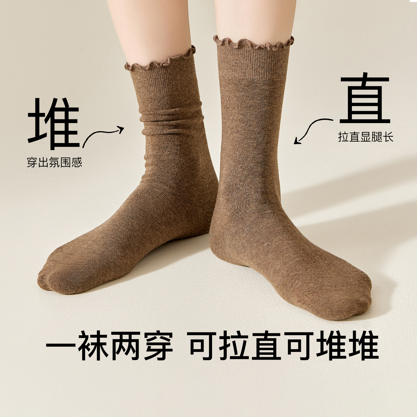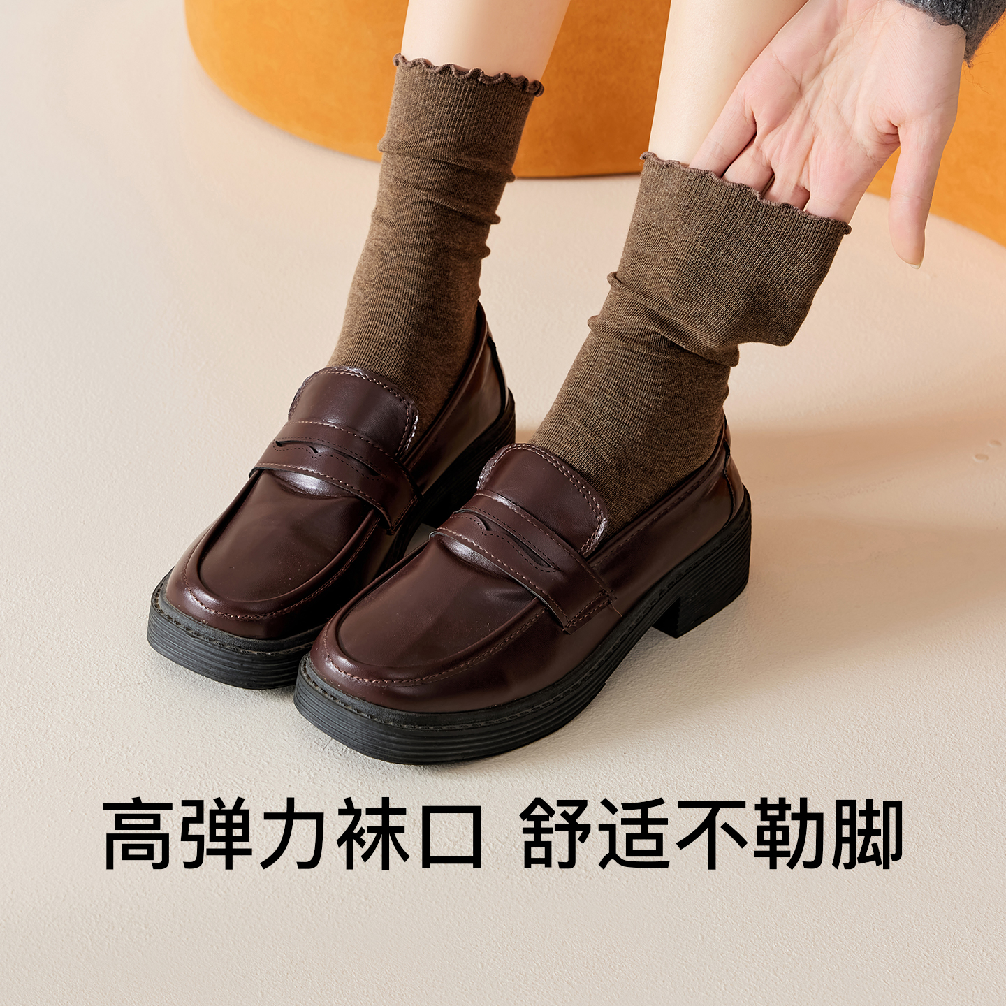 配小皮鞋 秋春木耳边堆堆袜抑菌防臭吸汗咖色中筒月子袜 袜子女款