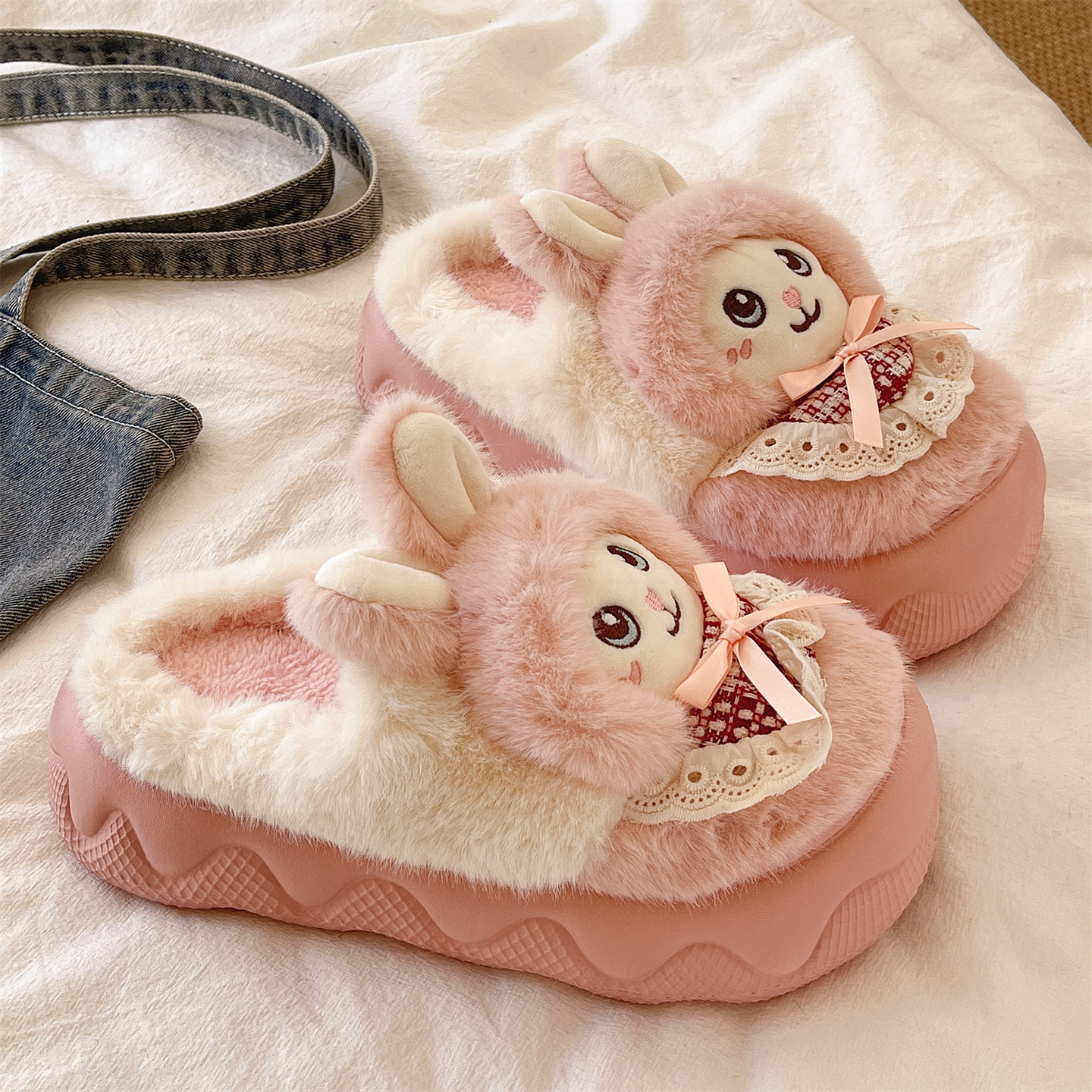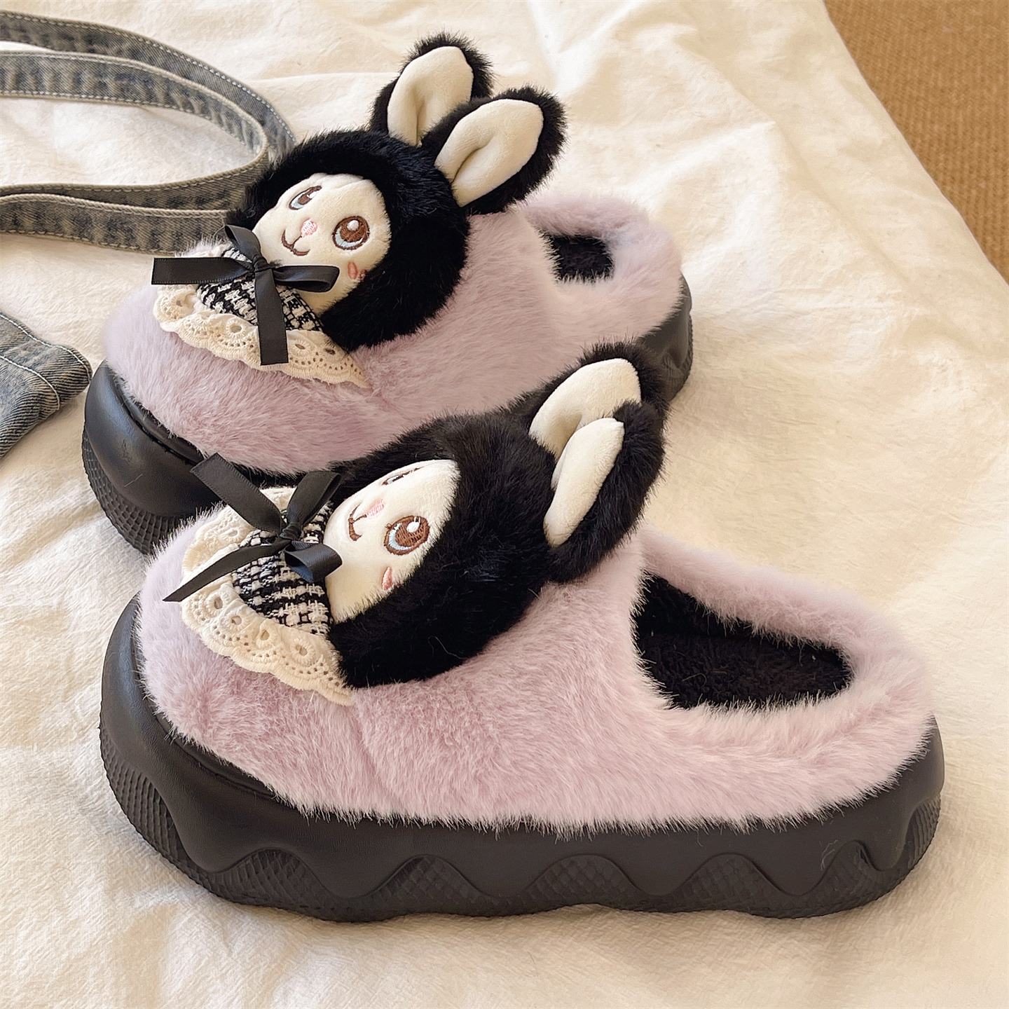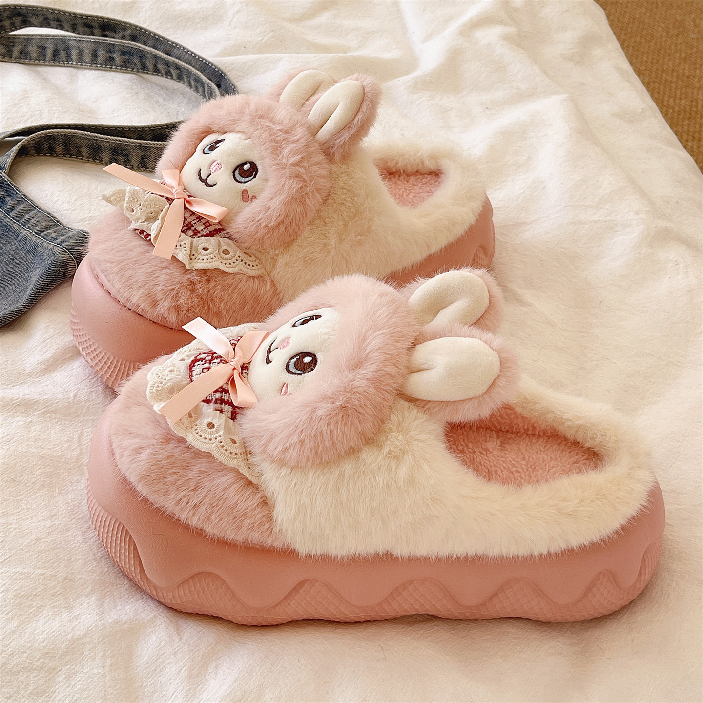 朴西朵朵绒情侣毛绒棉拖鞋 女士秋冬保暖防滑抗菌居家室内毛毛拖鞋