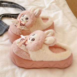 毛毛绒室内家居保暖鞋 厚底防滑2025新款 子居家 女士秋冬季 棉拖鞋