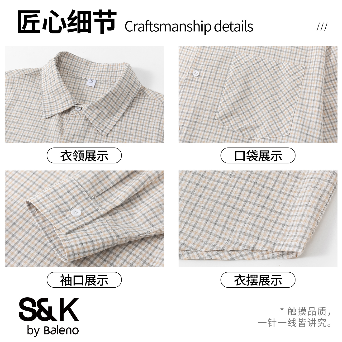 男款 衬衫 港风百搭宽松休闲衬衣MS 细格子长袖 班尼路SK2025春秋新款
