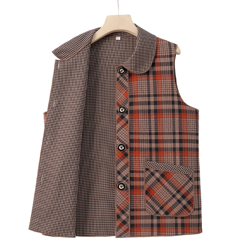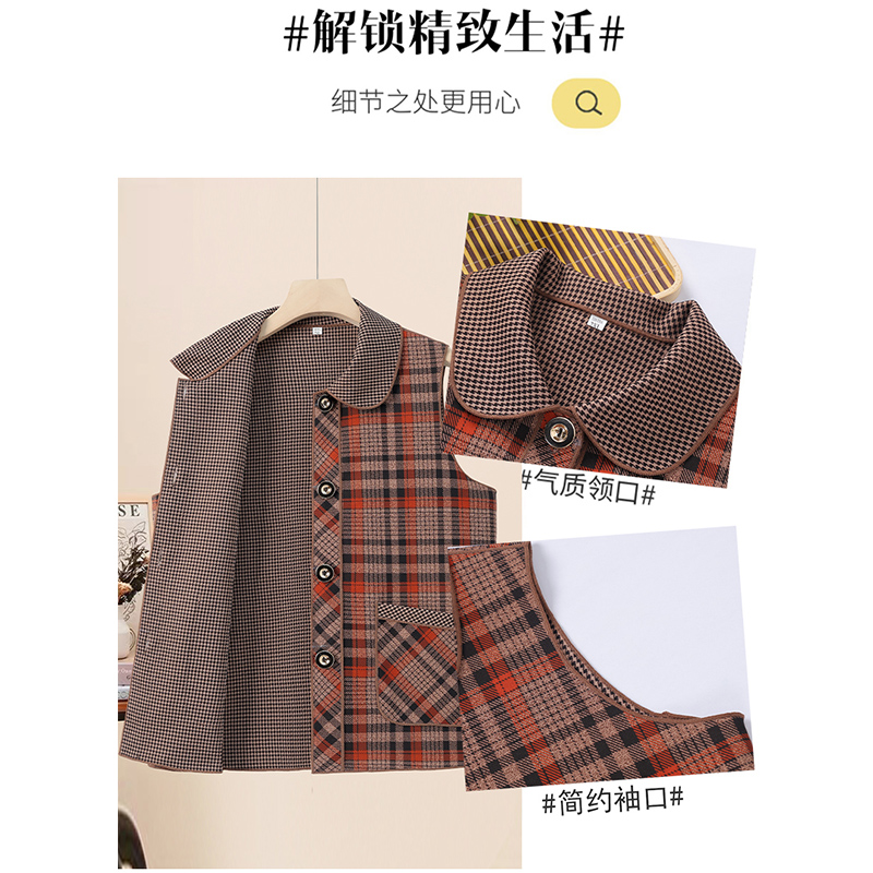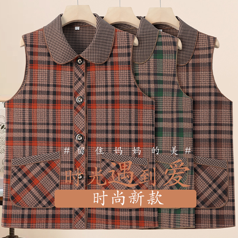 格子马夹妈妈上衣老太太坎肩 奶奶秋装 中老年人秋季 马甲女2025新款
