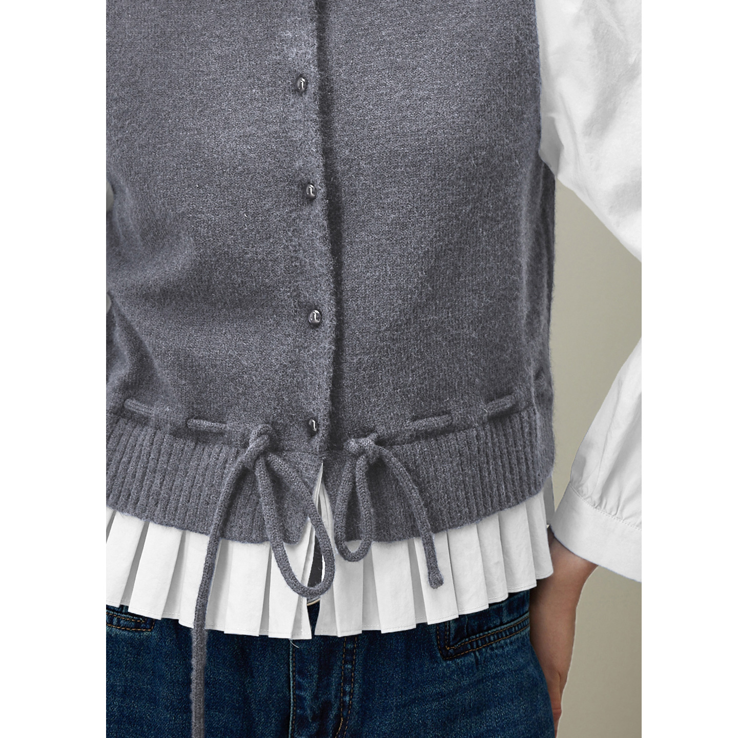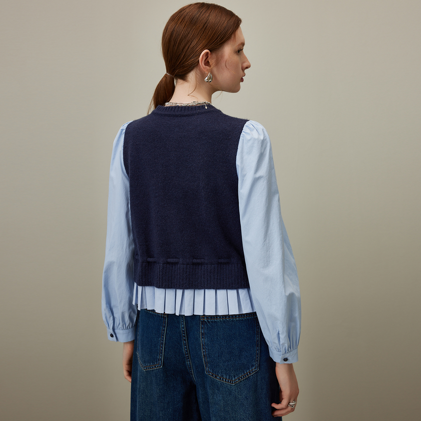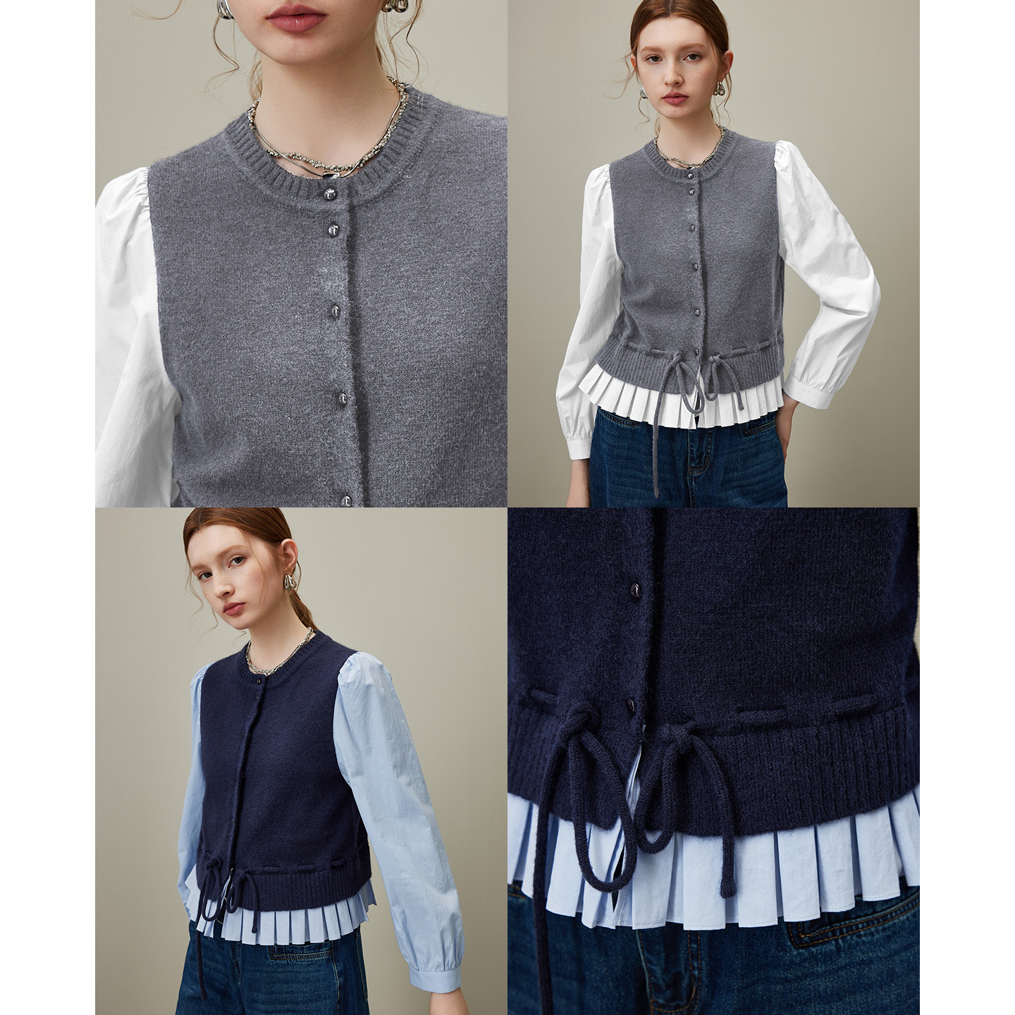 新款 dfvc韩版 女2025年秋季 衬衫 设计感针织拼接上衣 灰色假两件长袖