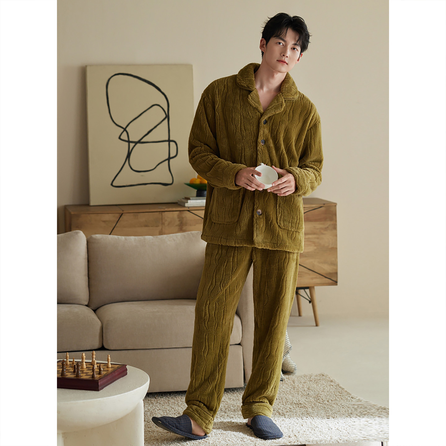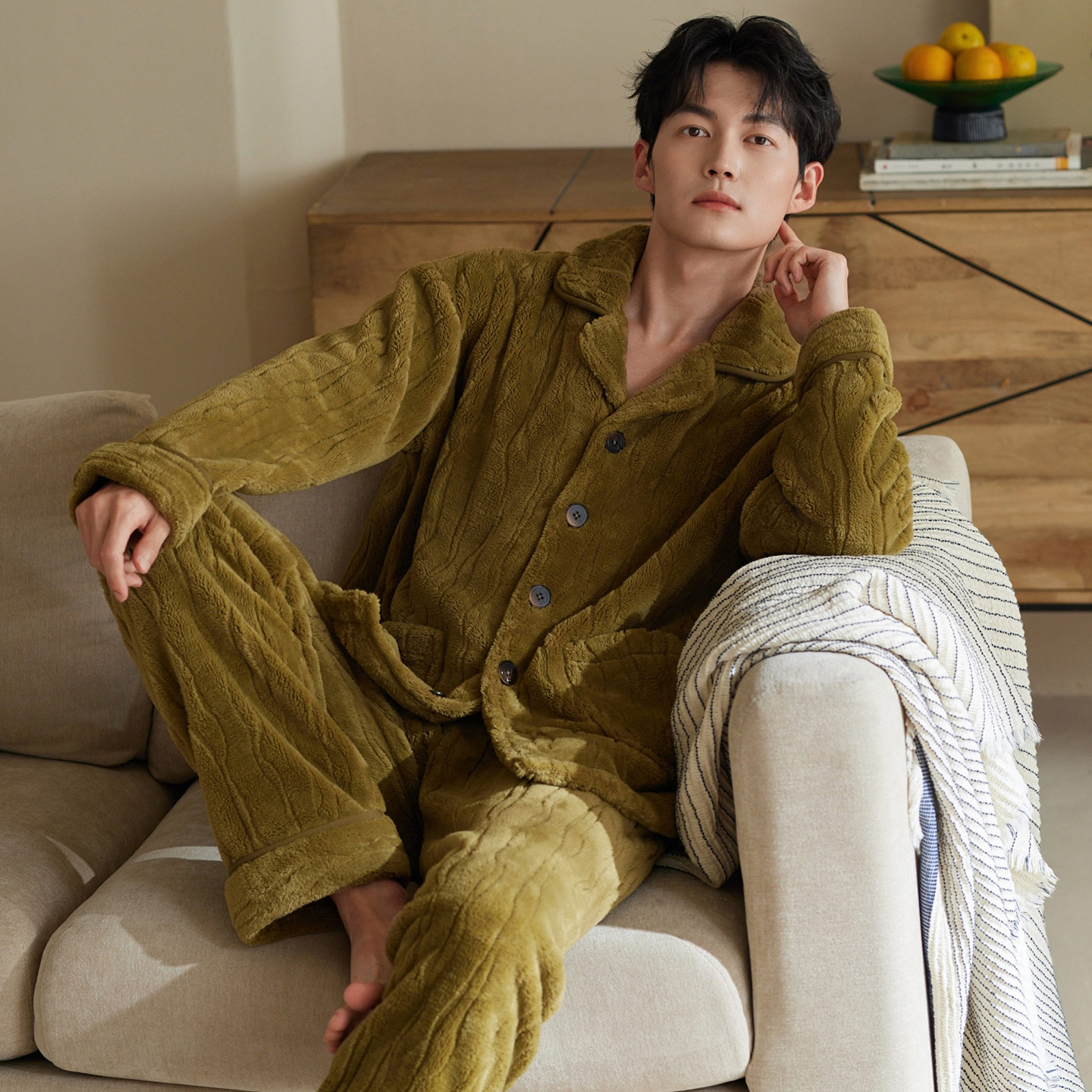 珊瑚绒加厚加绒秋冬款 冬季 睡衣男士 法兰绒高级感家居服 抗静电