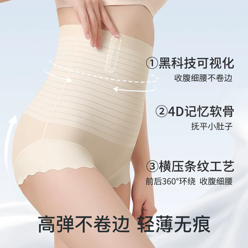 绷带不卷边 底裤 收腹内裤 女高腰提臀强力收小肚子全棉纯棉抗菌短裤