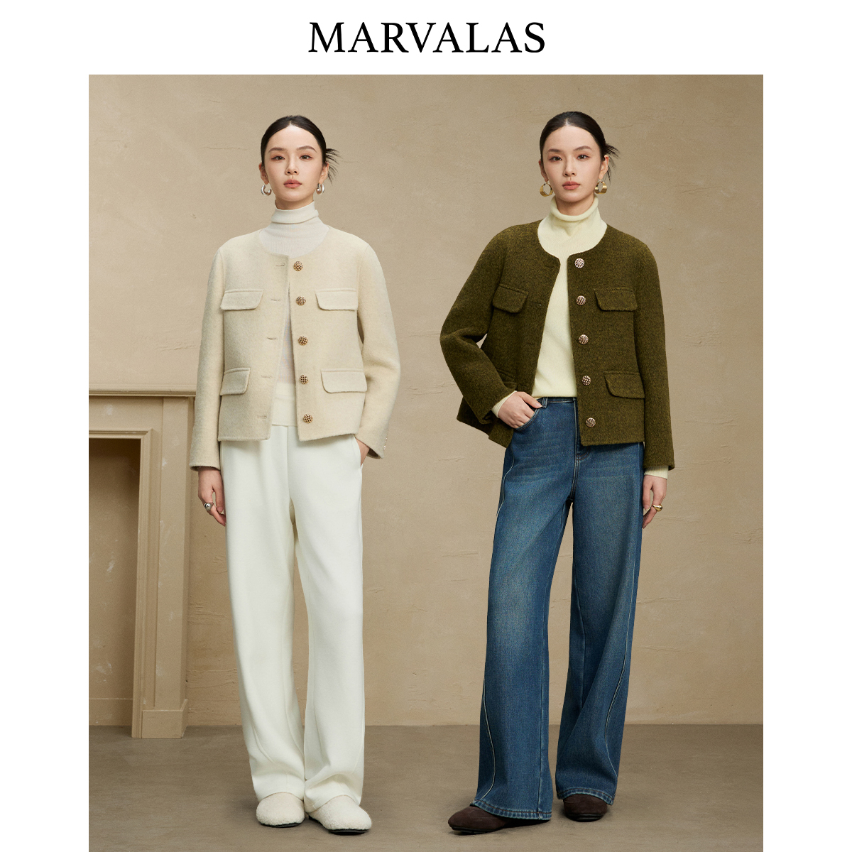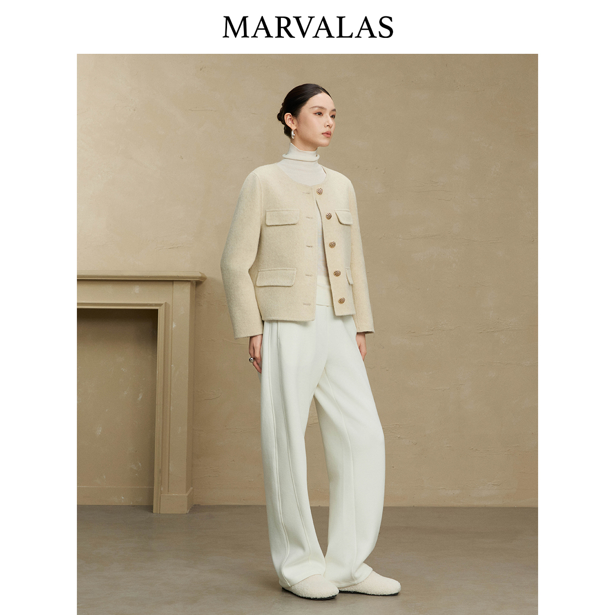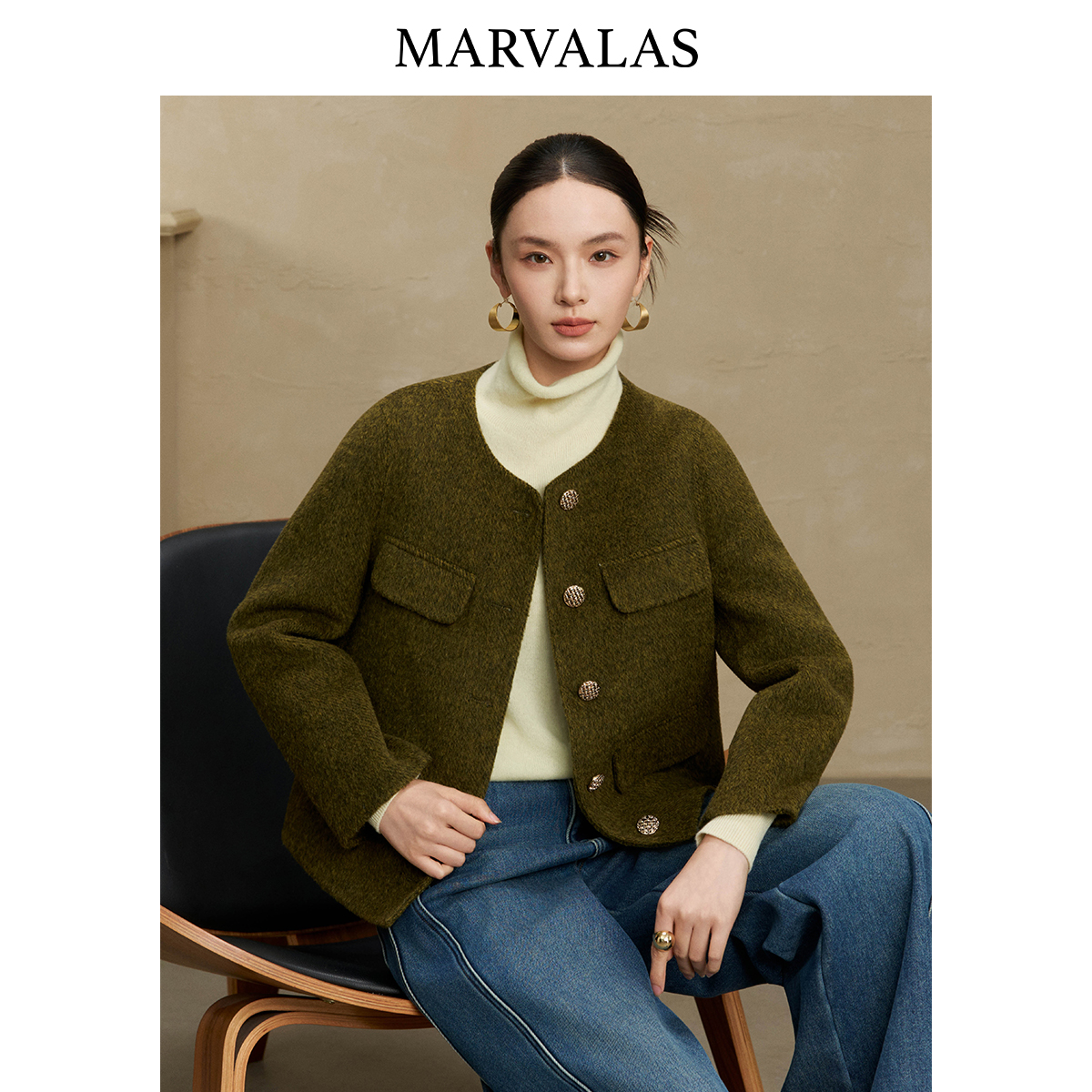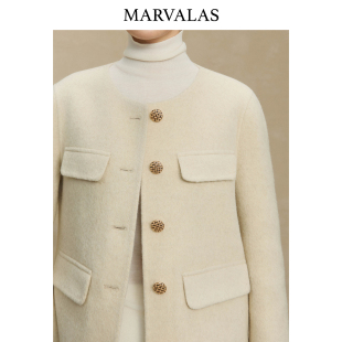 圆领大衣女小个子气质毛呢外套 高端羊毛双面呢短款 2025年春季 新款