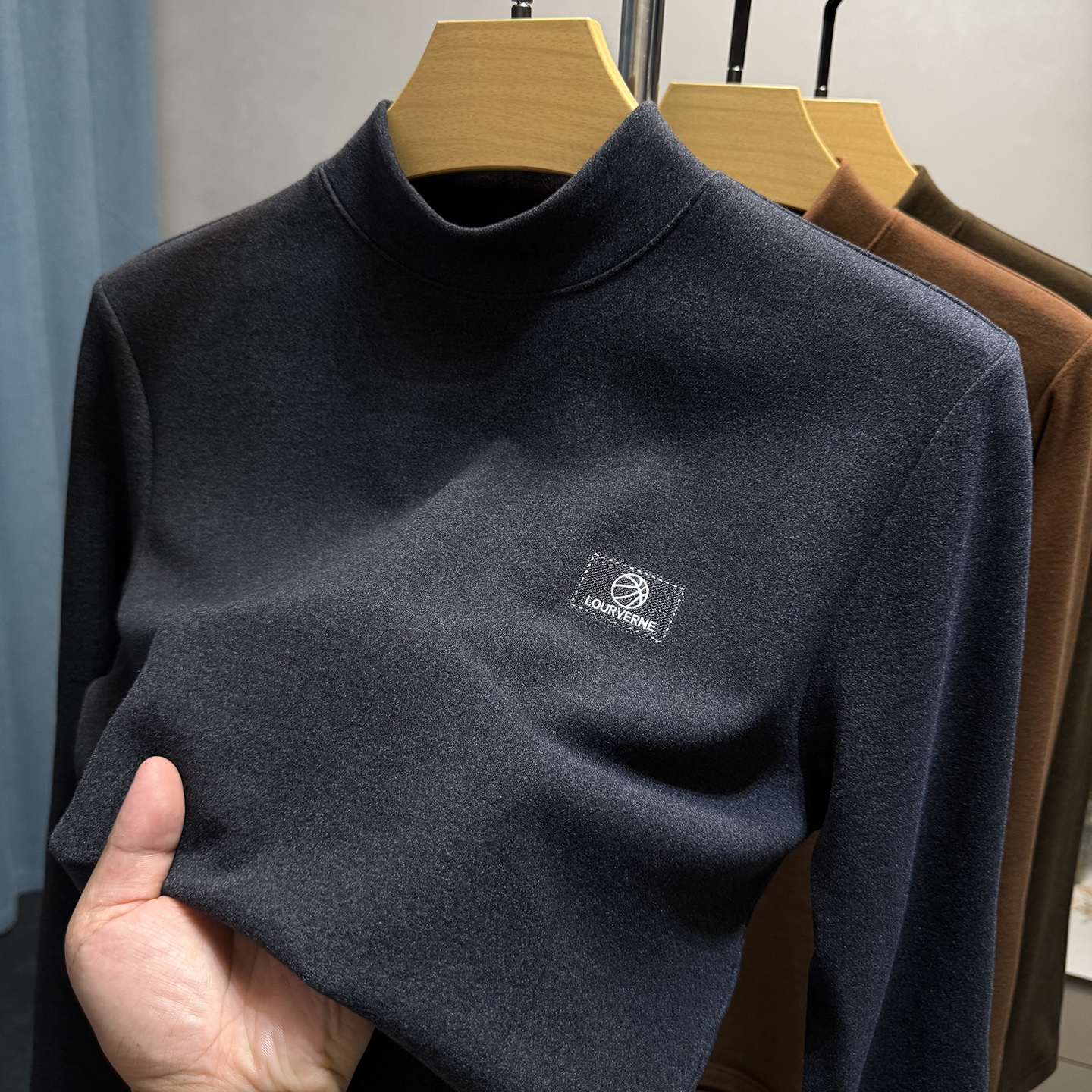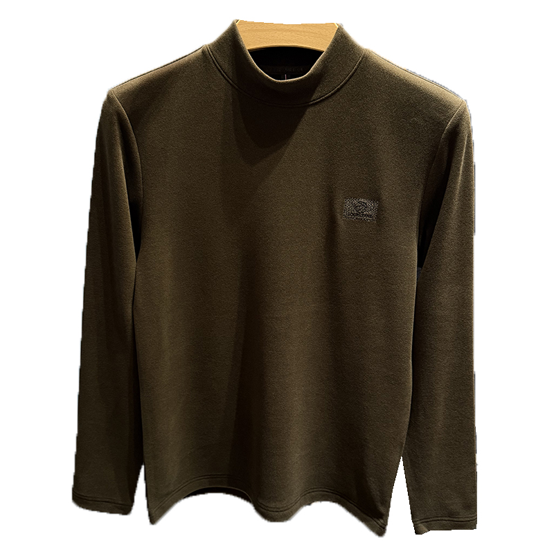 t恤男长袖 修身 中领内搭上衣服 男秋冬季 高端双面德绒半高领打底衫
