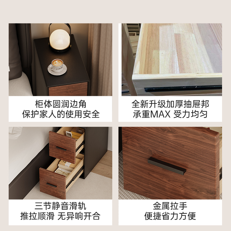 智能实木床头柜保险箱一体简约家用卧室带锁轻奢高级感小型收纳柜