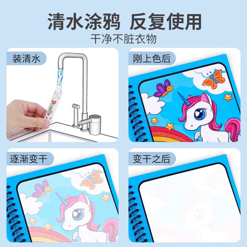 神奇水画本清水涂色绘画反复涂鸦书宝宝益智描绘本男孩幼儿园玩具