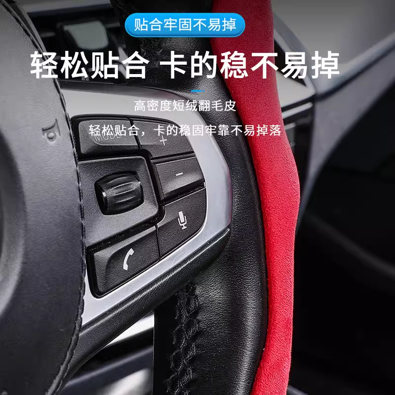 汽车方向盘套防滑吸汗稳固四季 把套 通用高档翻毛皮超薄手感卡式