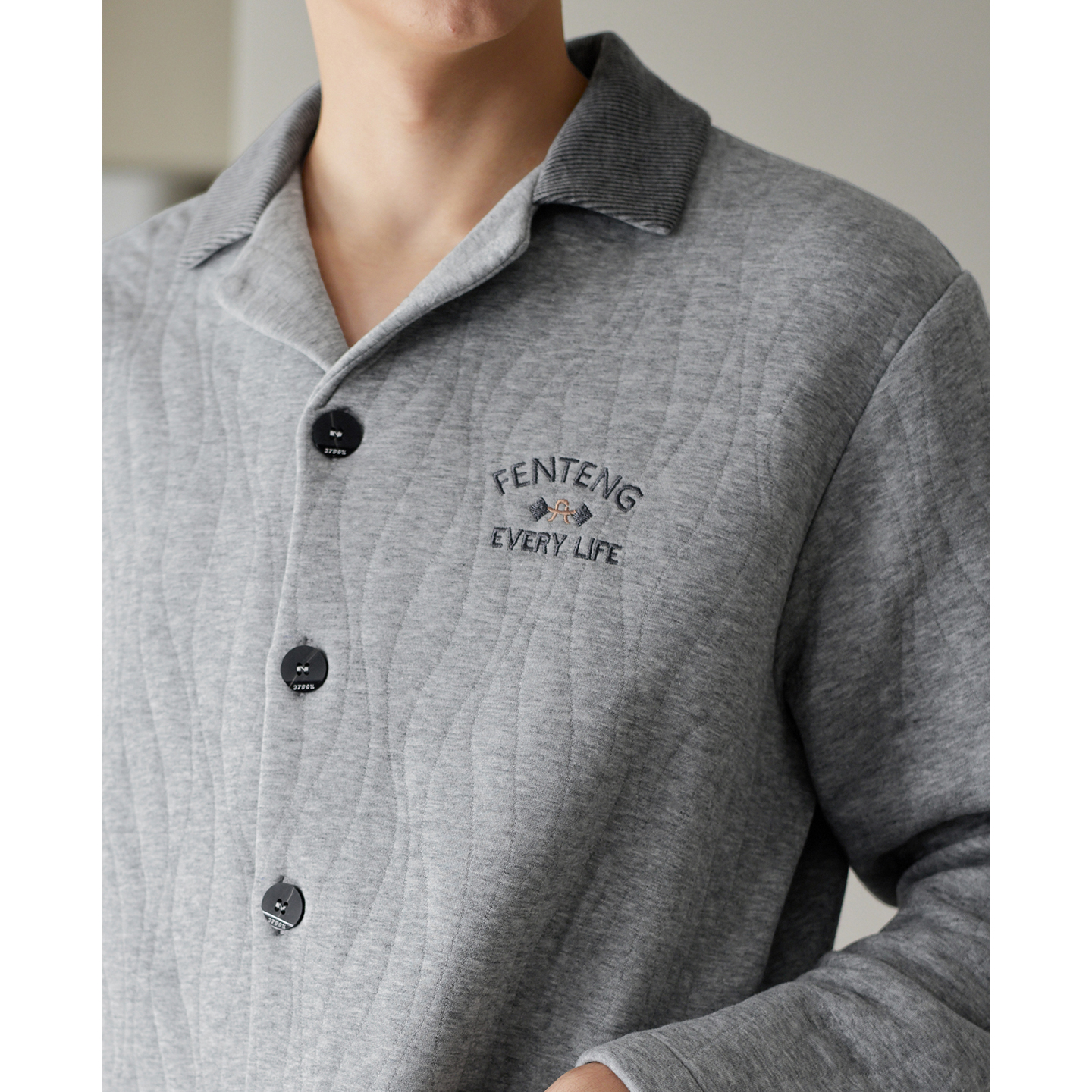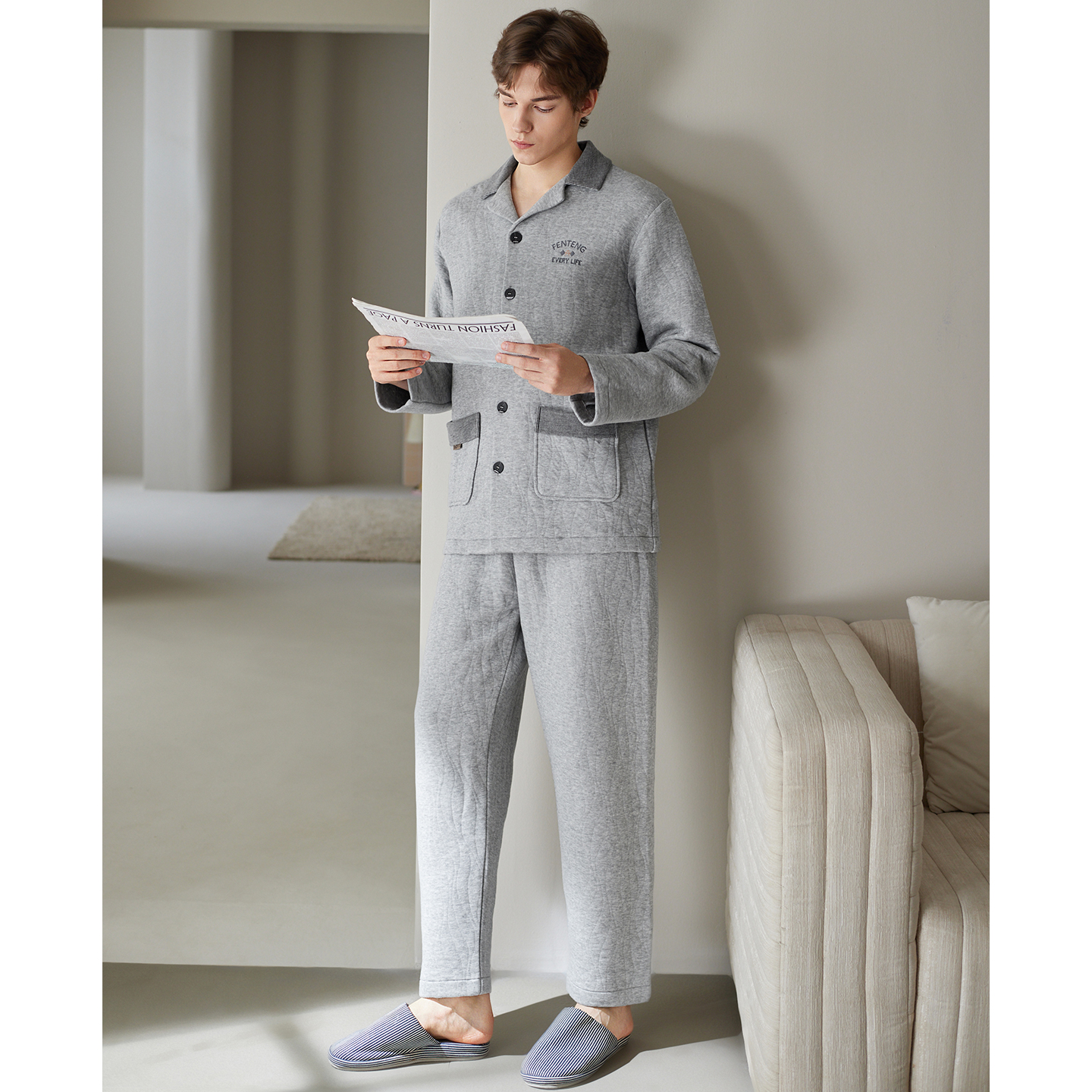 家居服套装 芬腾男士 加厚保暖加大码 空气棉纯棉夹层长袖 睡衣秋冬季