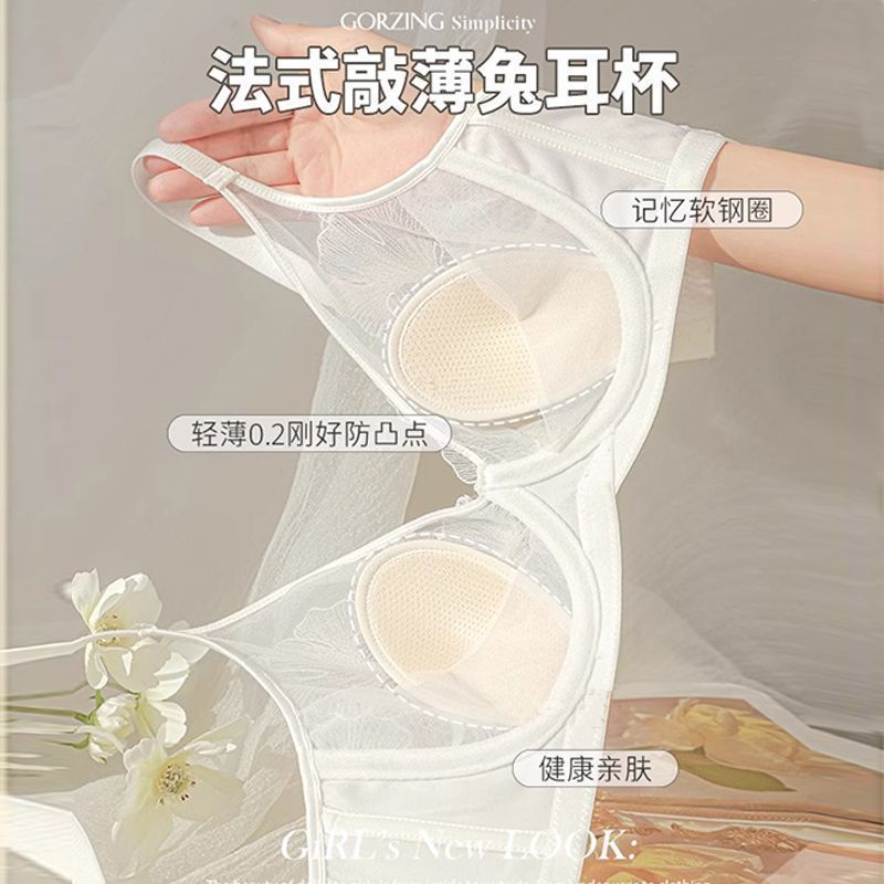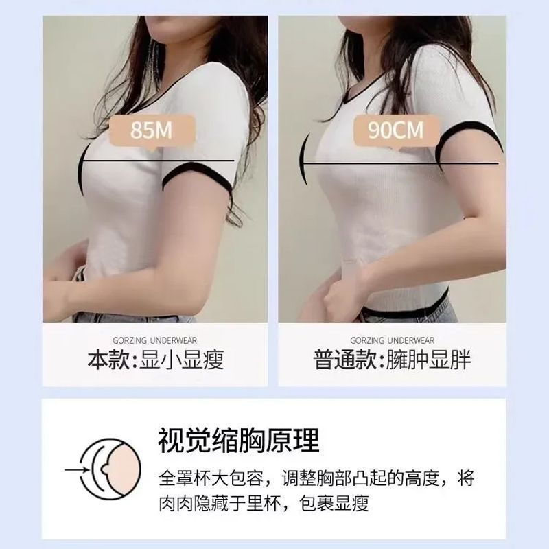 大胸显小文胸罩 防下垂内衣女夏季 超薄款 调整型聚拢收副乳矫正大码