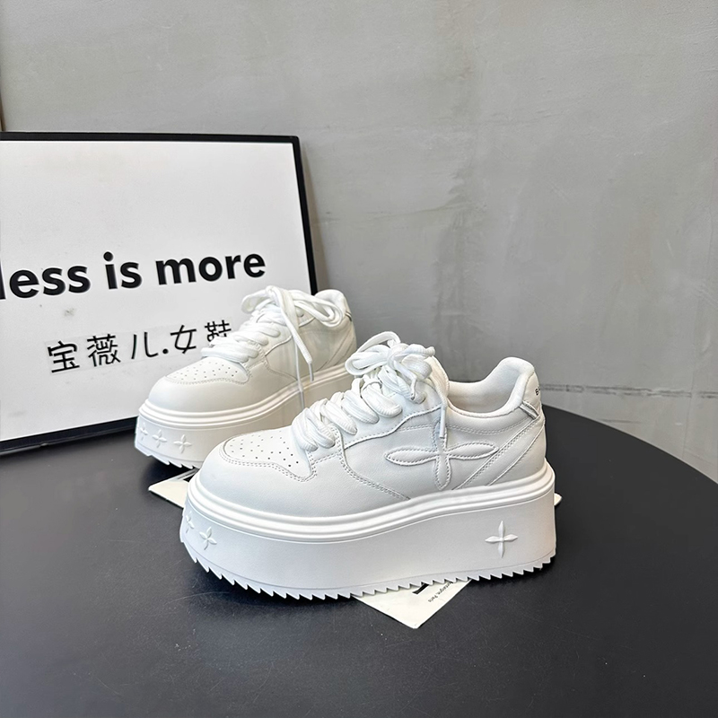 休闲板鞋 百搭系带厚底松糕增高超火小白鞋 爆款 新款 子女2025春秋季