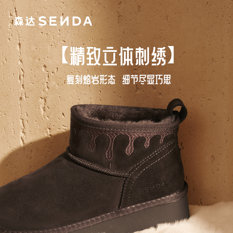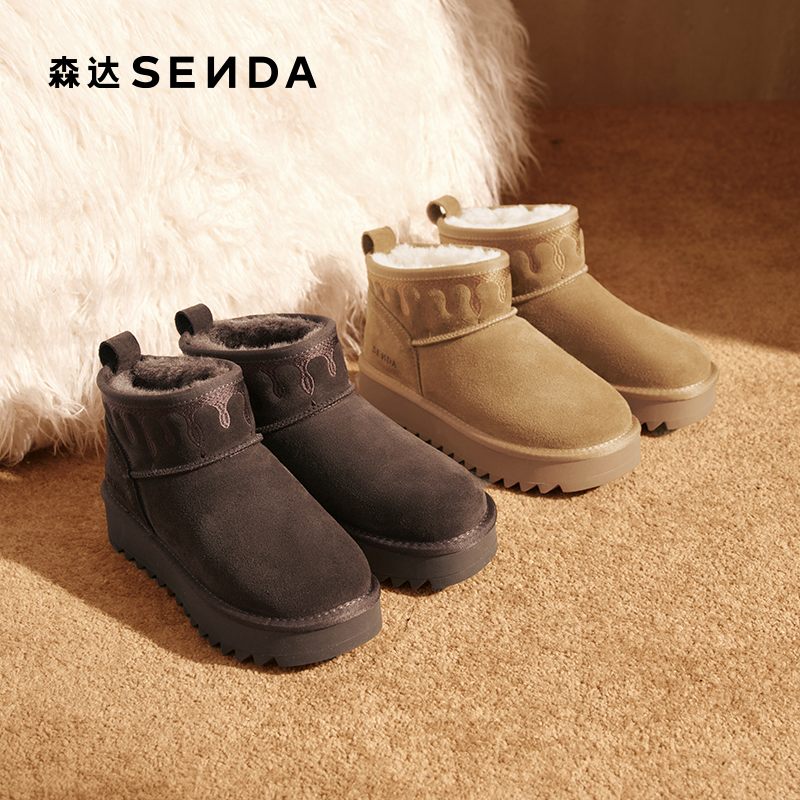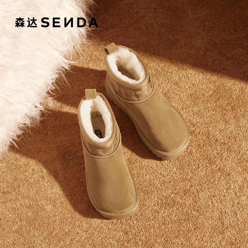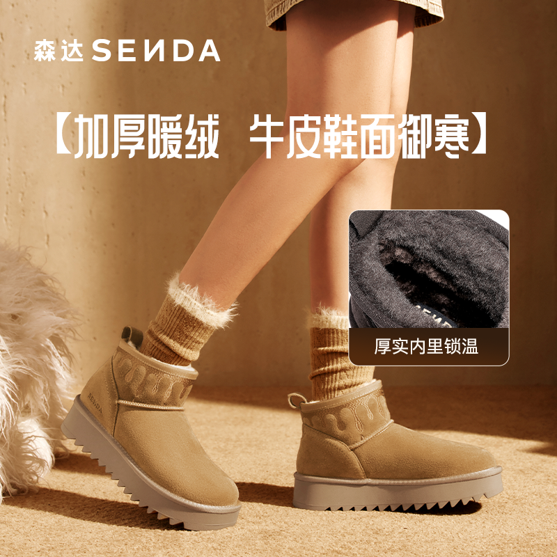 舒适保暖厚底增高短靴棉鞋 森达真皮雪地靴女25冬新款 双11预售