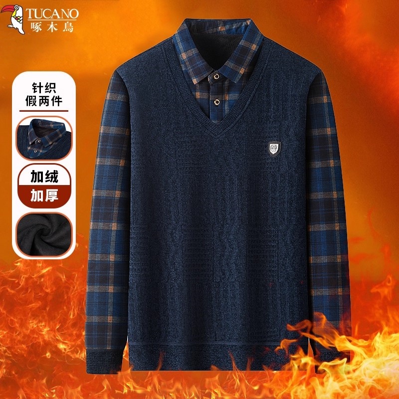 内搭打底衫 潮流半针织毛线衫 加绒加厚 高领毛衣男韩版 2025秋冬新款