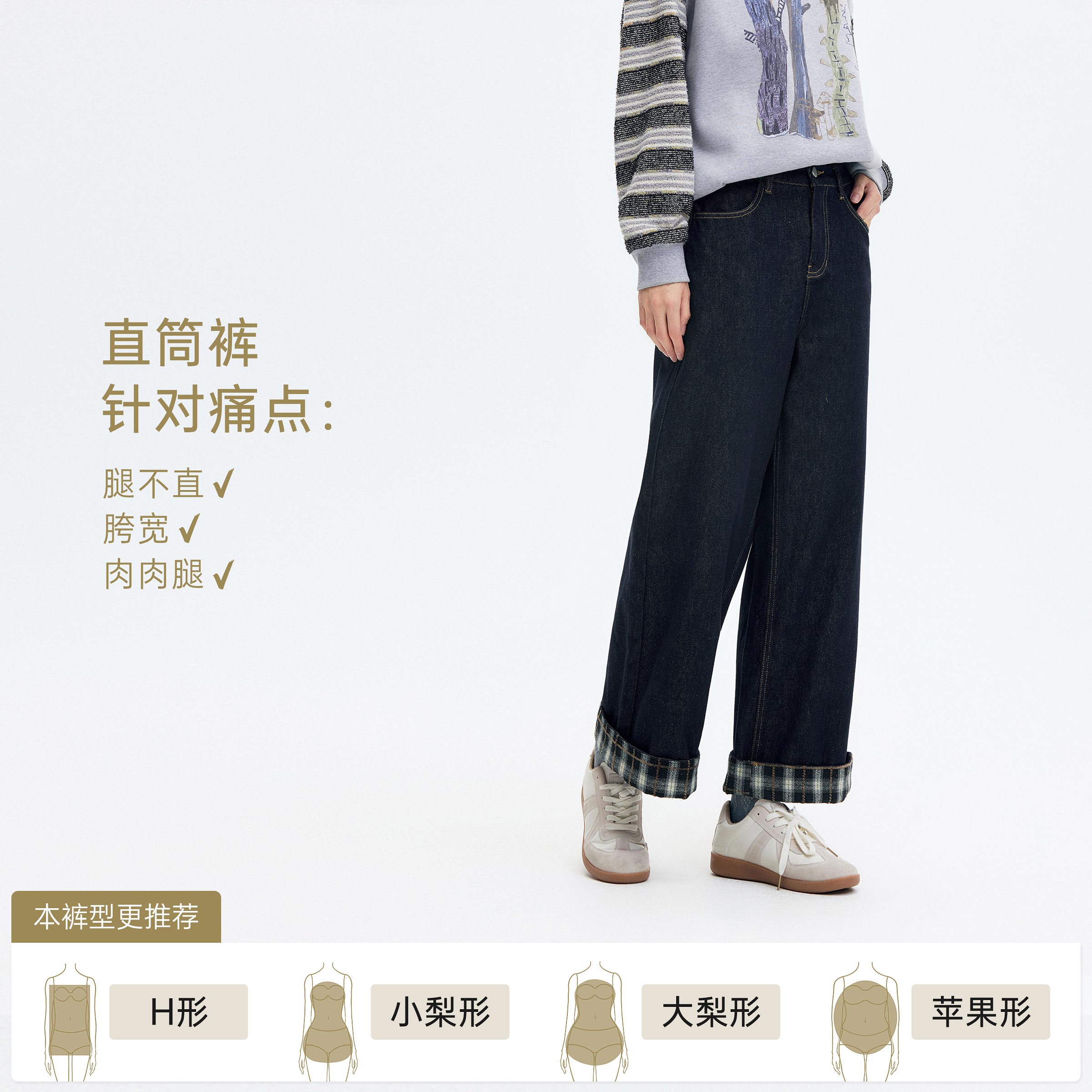 小个子胖mm直筒长裤 双排扣高腰窄版 女秋冬2025爆款 牛仔裤 子 阔腿裤