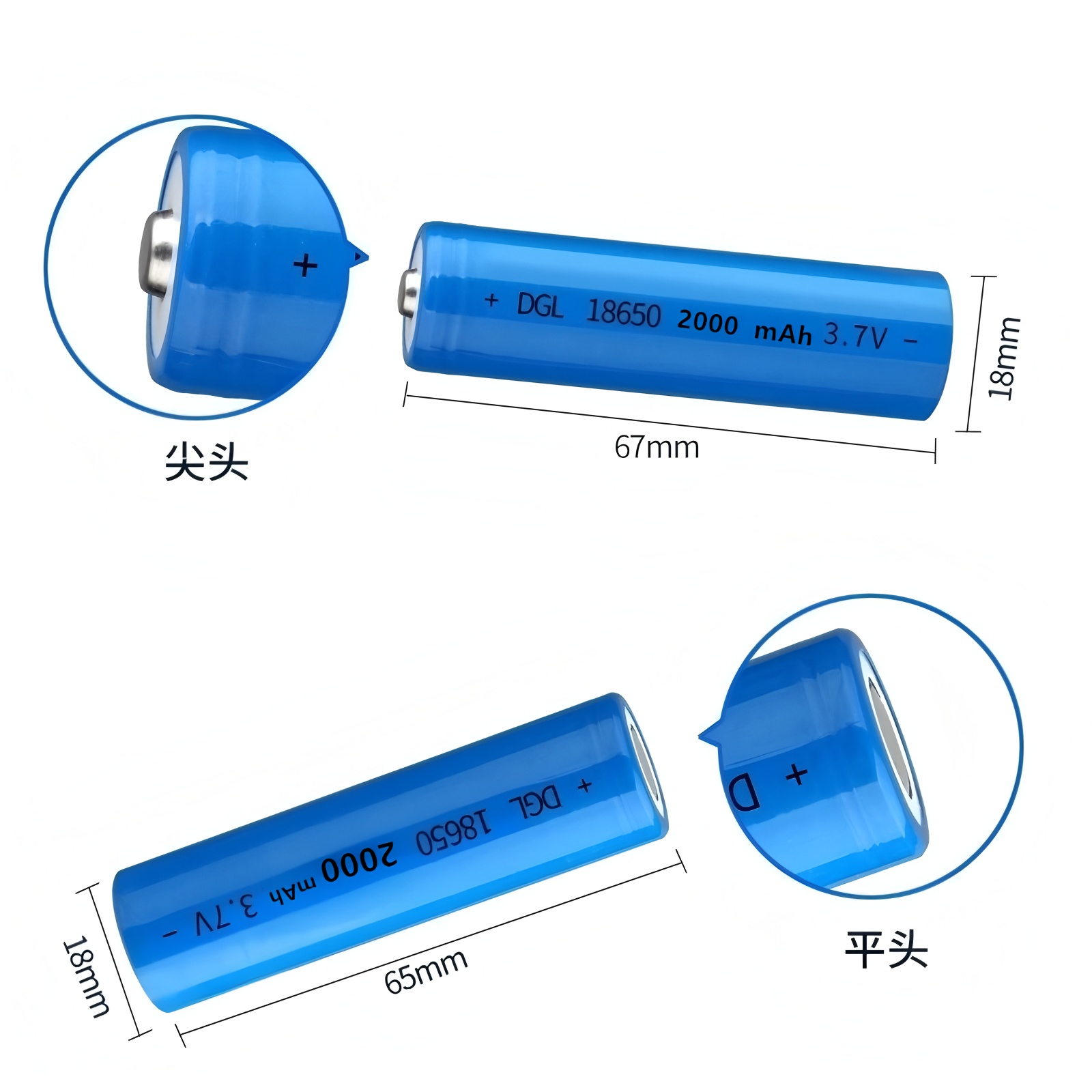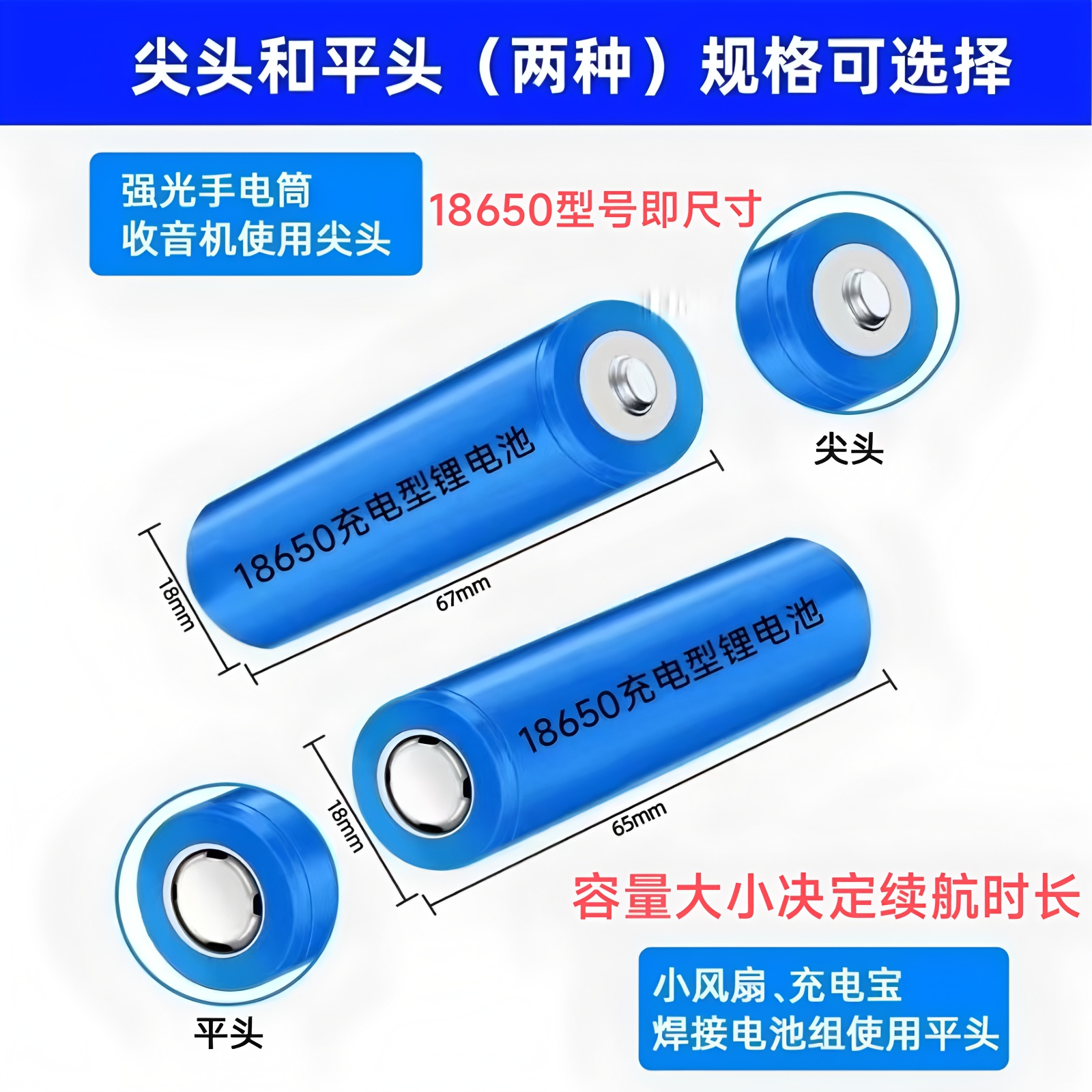 18650锂电池尖头存储电芯可拆卸超长续航3200毫安可循环使用电池