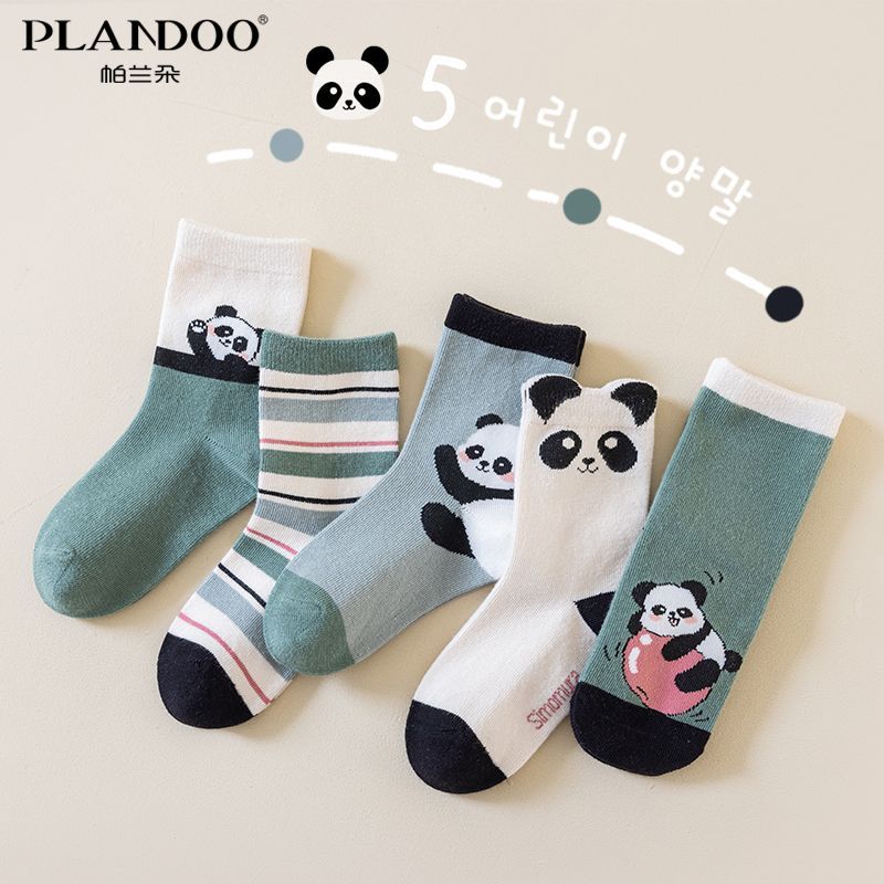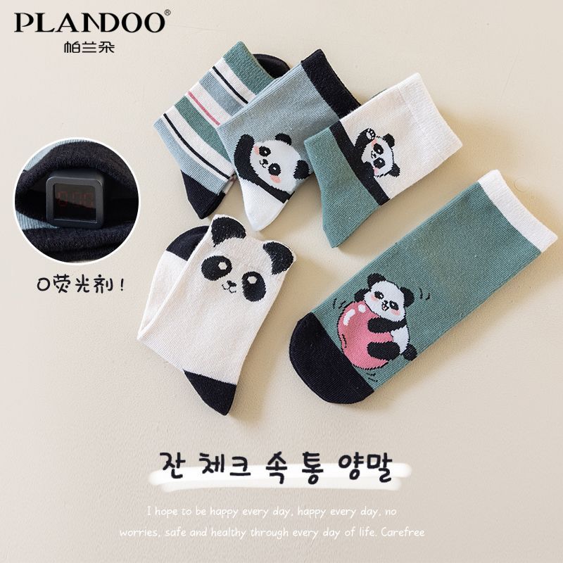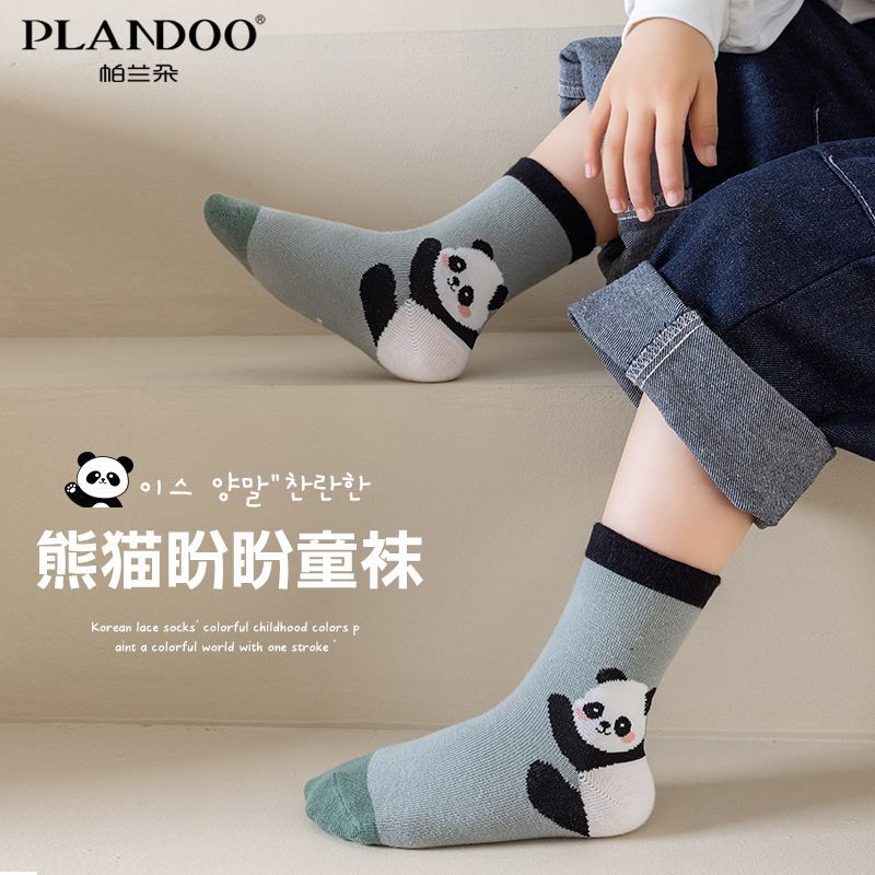 帕兰朵儿童春秋季 棉质男女童中筒简约中筒袜 可爱熊猫舒适百搭新款